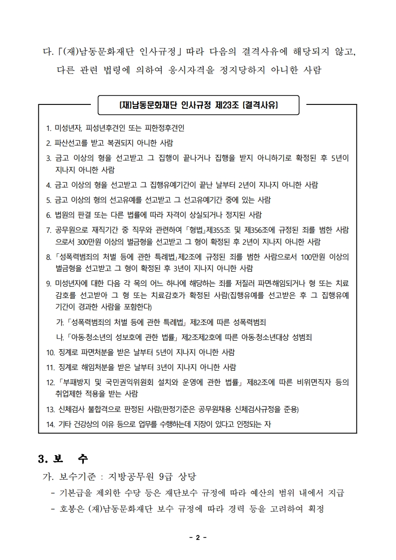 [재단법인 남동문화재단] (재)남동문화재단 2025년 제5회 직원(일반직) 채용 공고