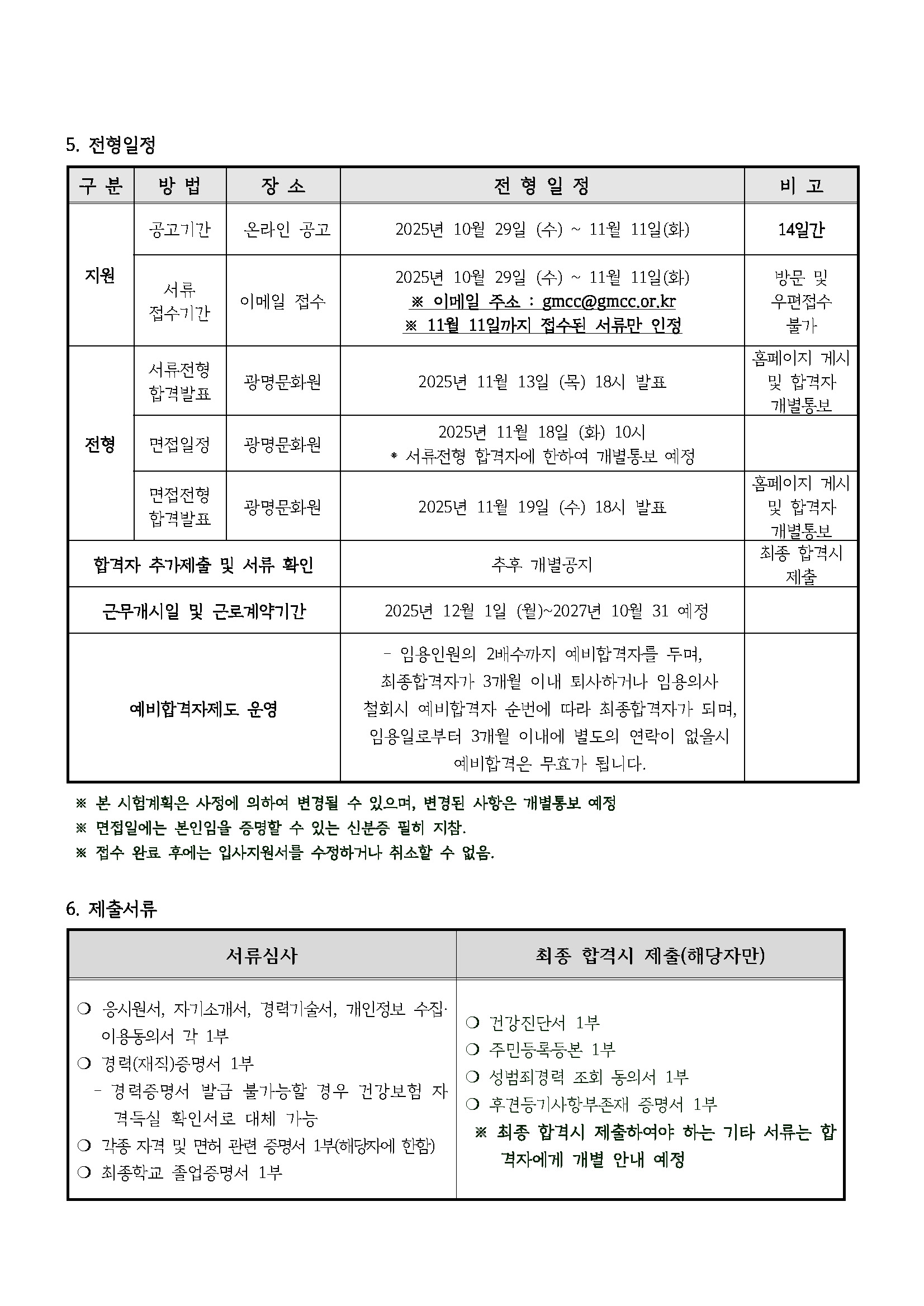 2025년 제6차 기간제근로자 공개채용 공고