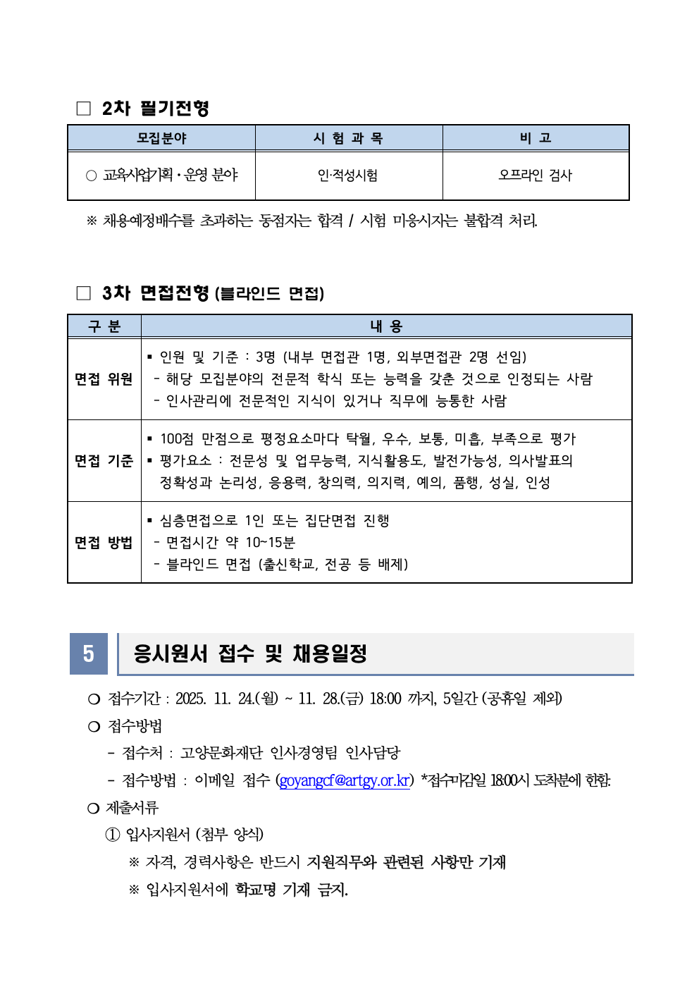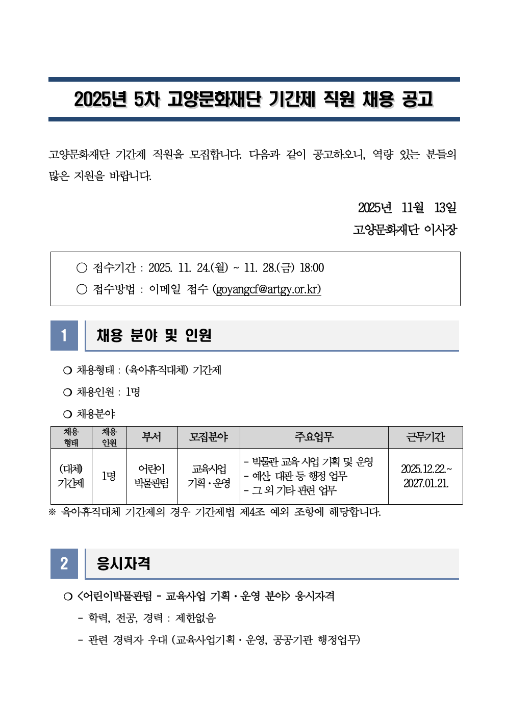 [고양문화재단] 2025년 5차 고양문화재단 기간제 직원 채용 공고