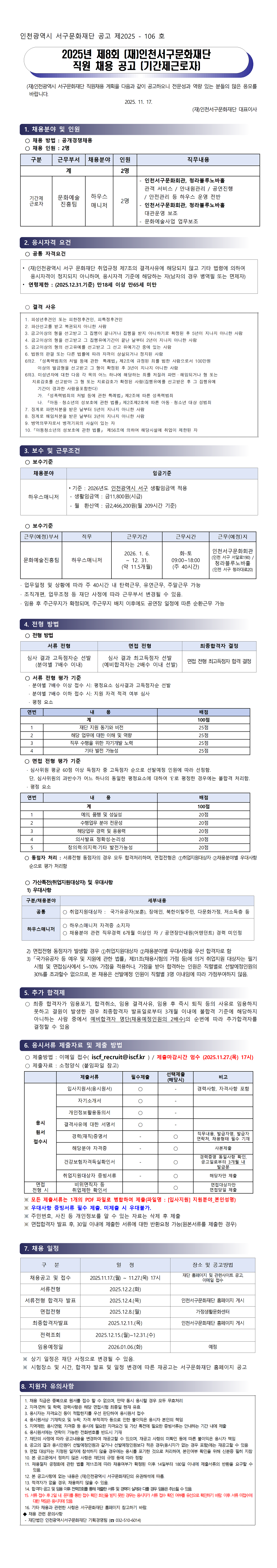 [(재)인천서구문화재단] 2025년 제8회 인천서구문화재단 직원 채용 공고(하우스매니저)