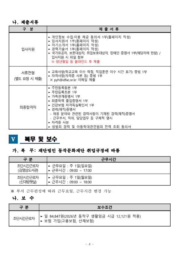 [(재)동작문화재단] 2025년 제6차 동작구립도서관 초단시간근로자 채용 공고