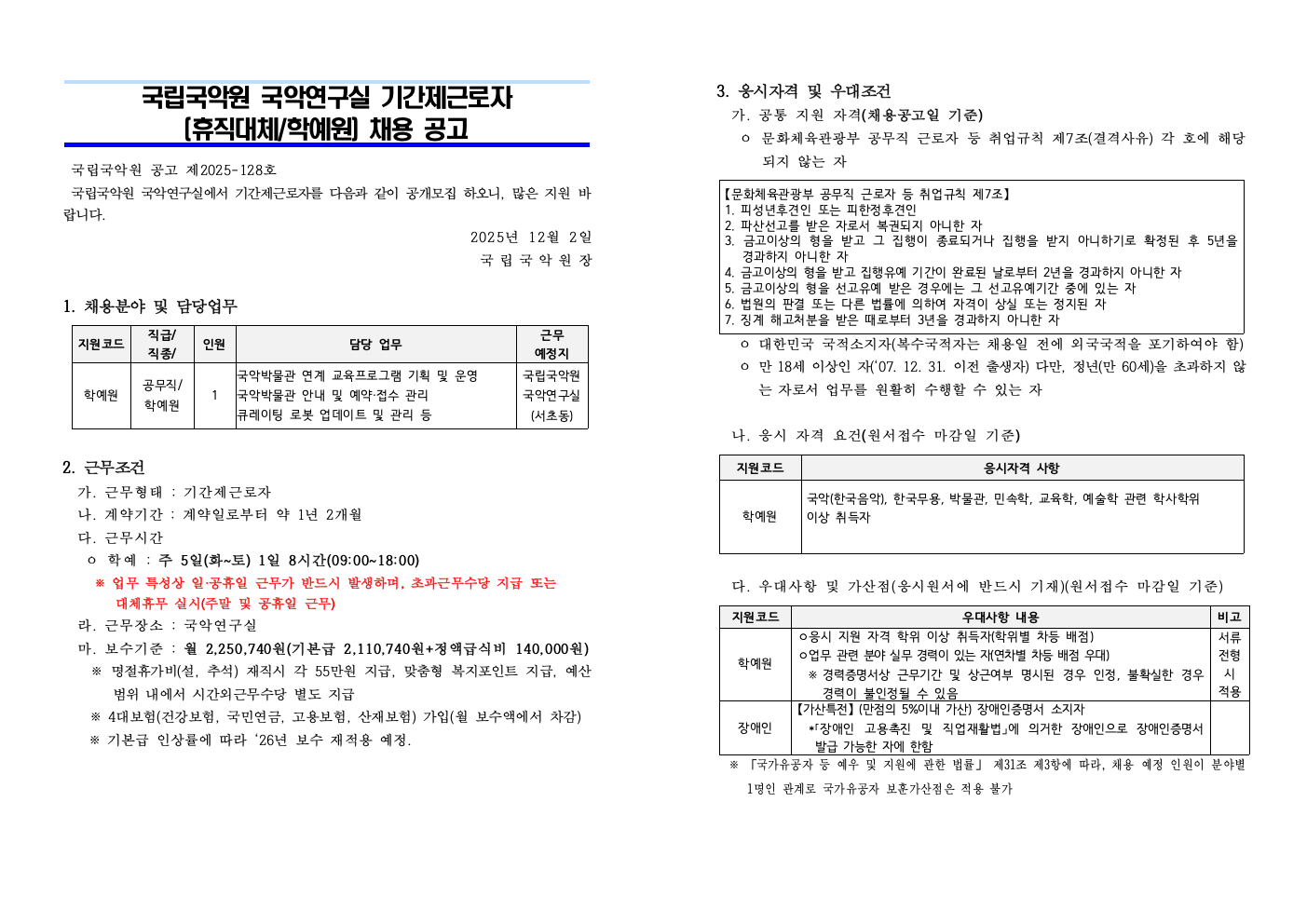 20251203060611_국립국악원 국악연구실 공무직(학예원) 채용 공고문.hwp