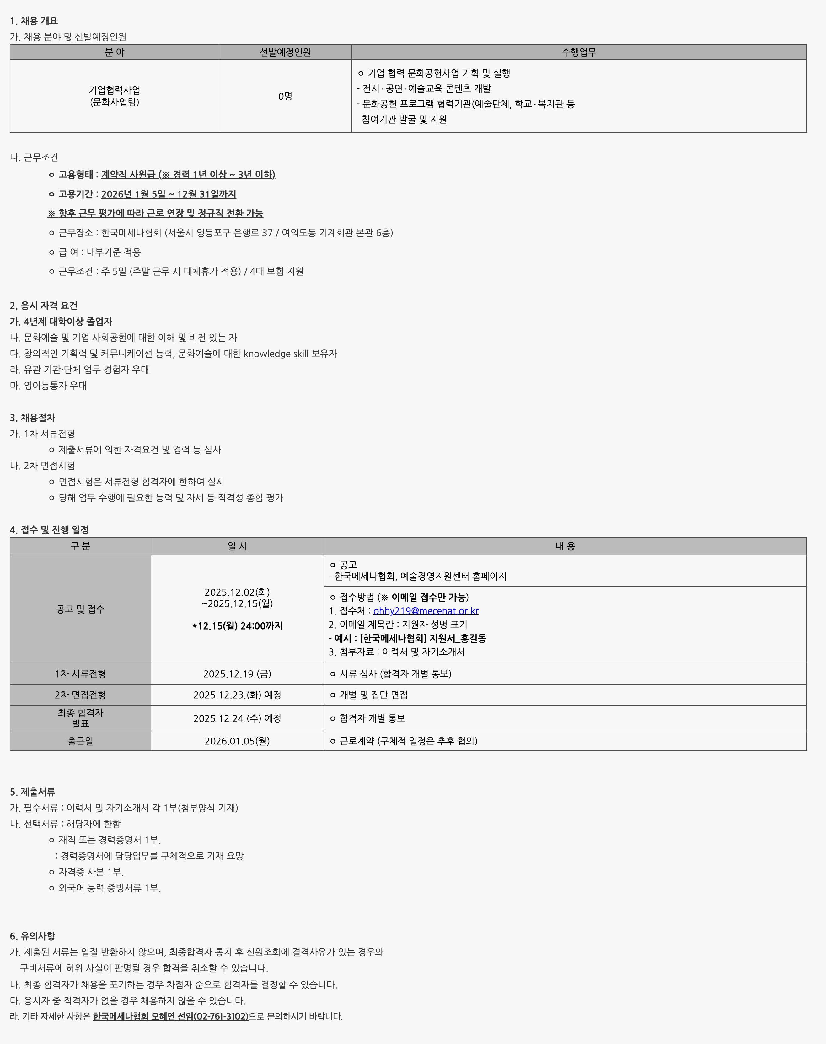 [아트모아] [한국메세나협회] 직원 채용 공고