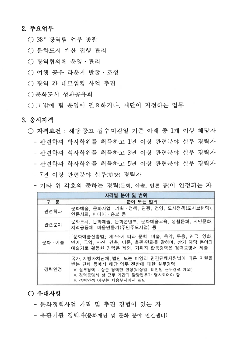 (재)속초문화관광재단 문화도시센터 팀장 채용공고