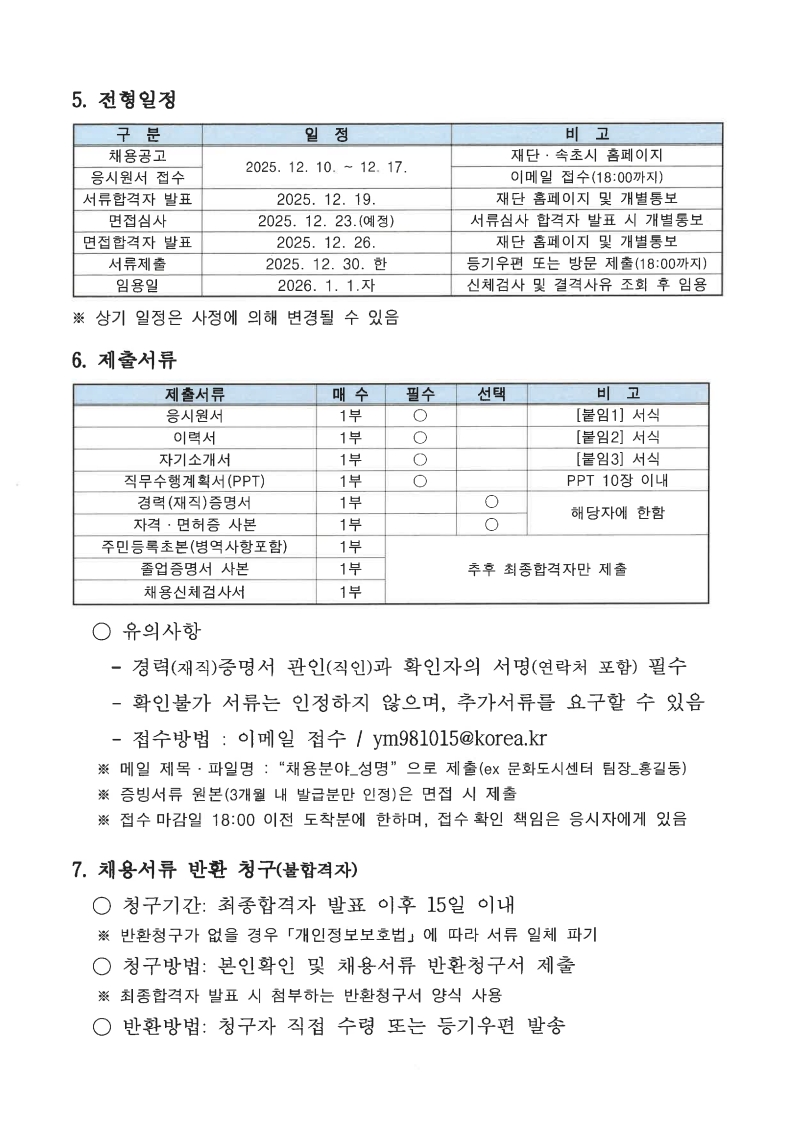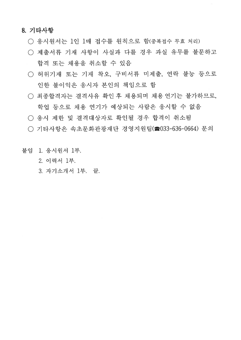 20251210103838_[붙임] 응서원서 외_(재)속초문화관광재단 문화도시센터 팀장 채용공고.hwp