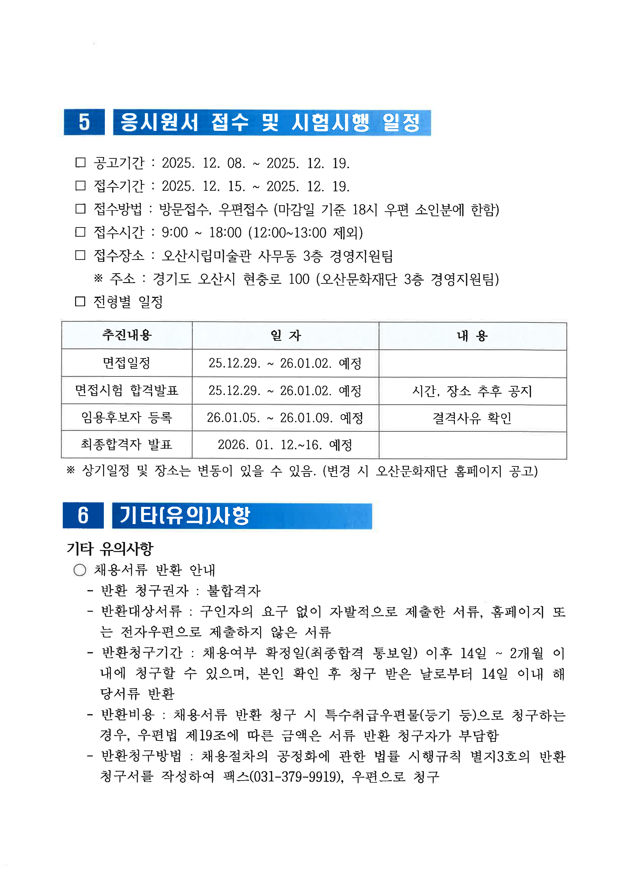[(재)오산문화재단] 2025년 제4회 직원 채용 재공고