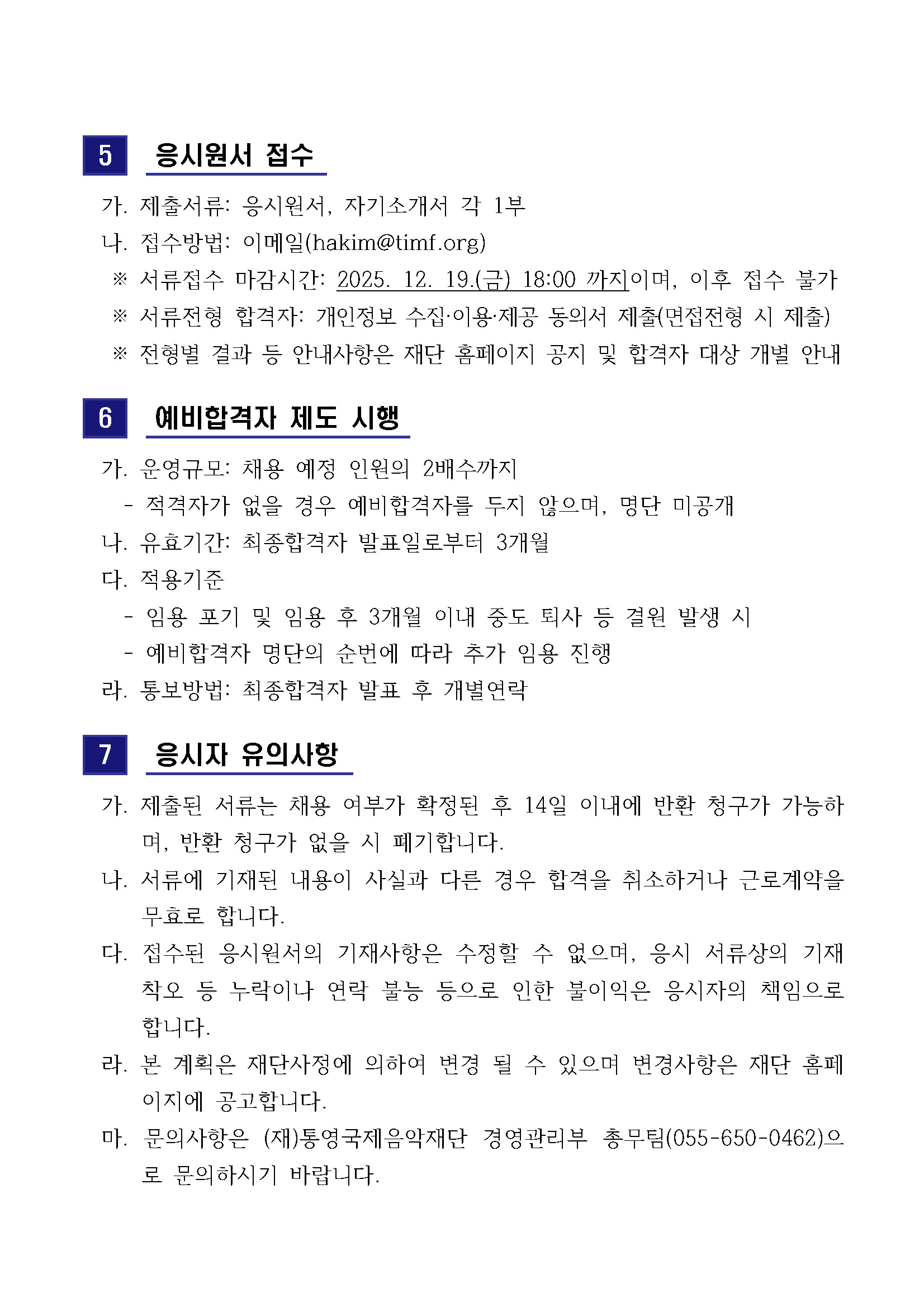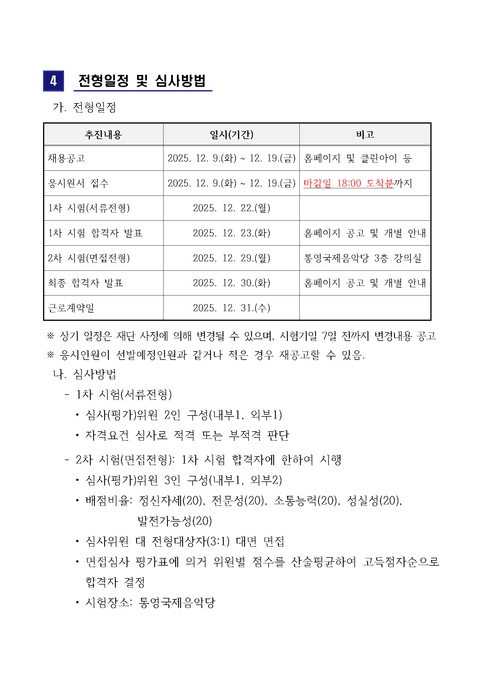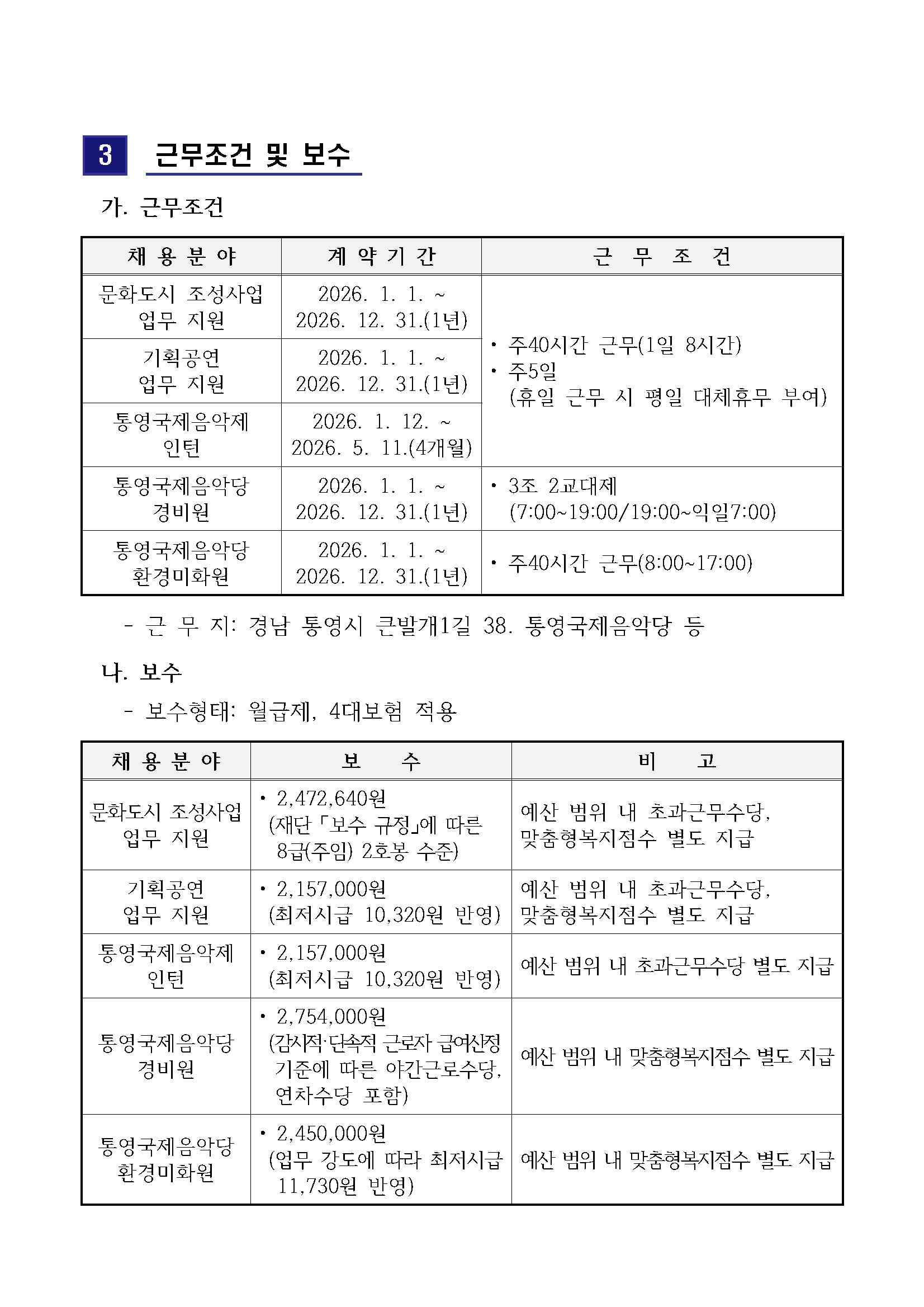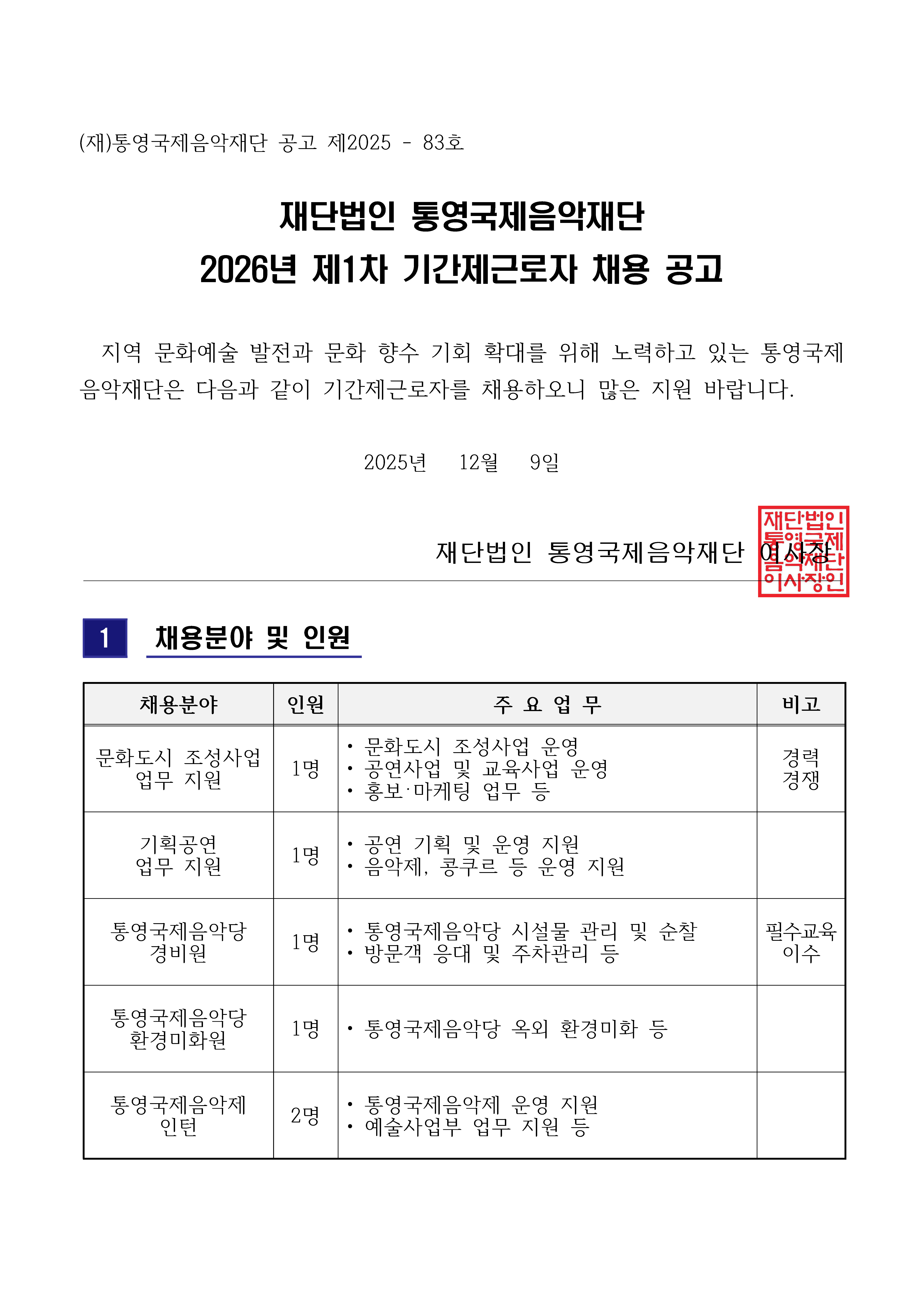 [(재)통영국제음악재단 ] (재)통영국제음악재단 2026년 제1차 기간제근로자 채용 공고