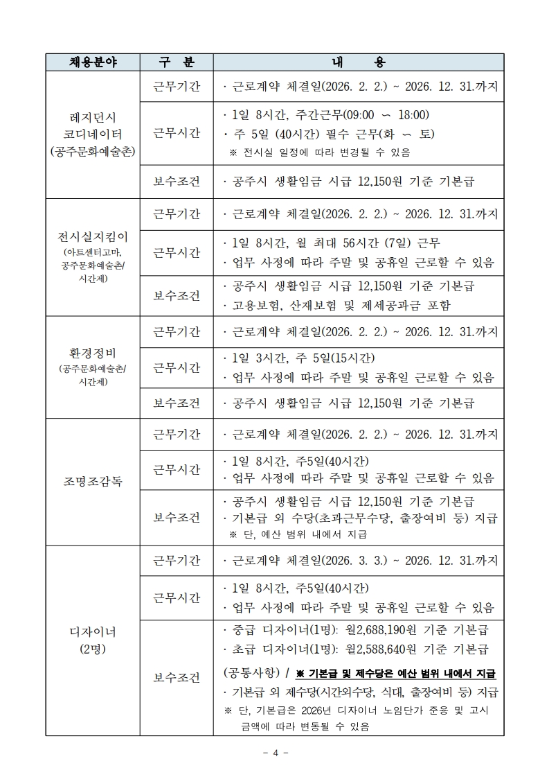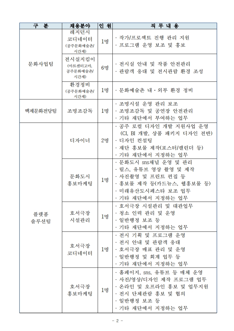 [전국지역문화재단연합회] [(재)공주문화관광재단] 2026년 제1회 기간제근로자 채용 공고