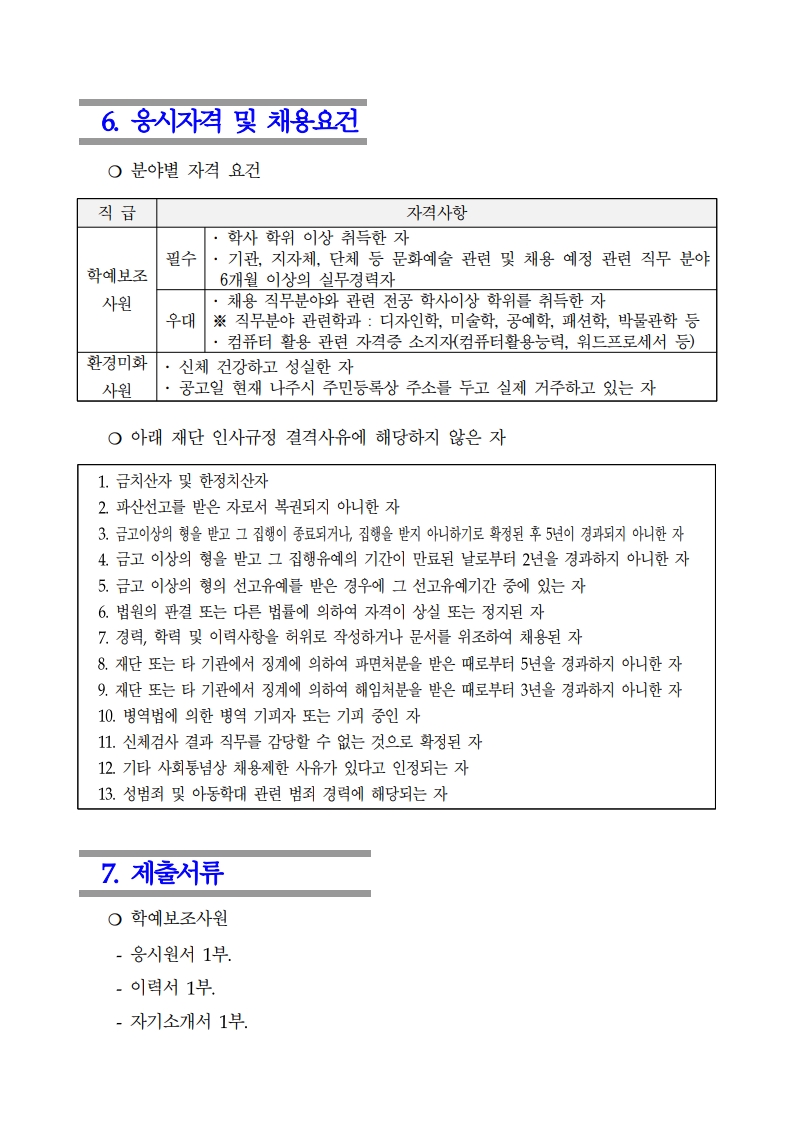 [회원등록공고] 2025년 제4차 (재)인천중구문화재단 직원채용 공고