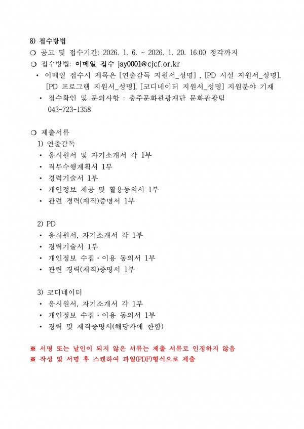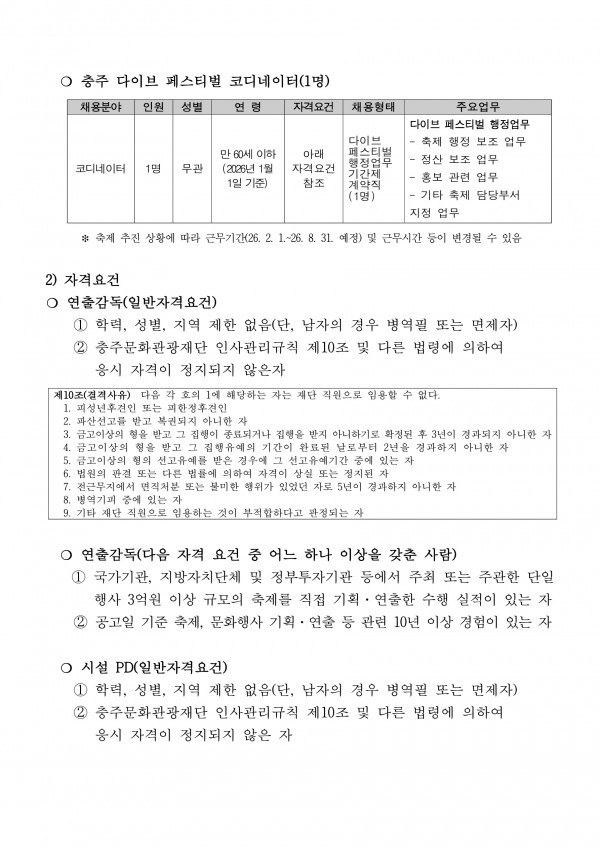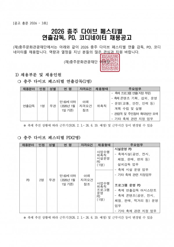 [재단법인 충주문화관광재단] 2026 충주 다이브 페스티벌 연출감독 채용 공고