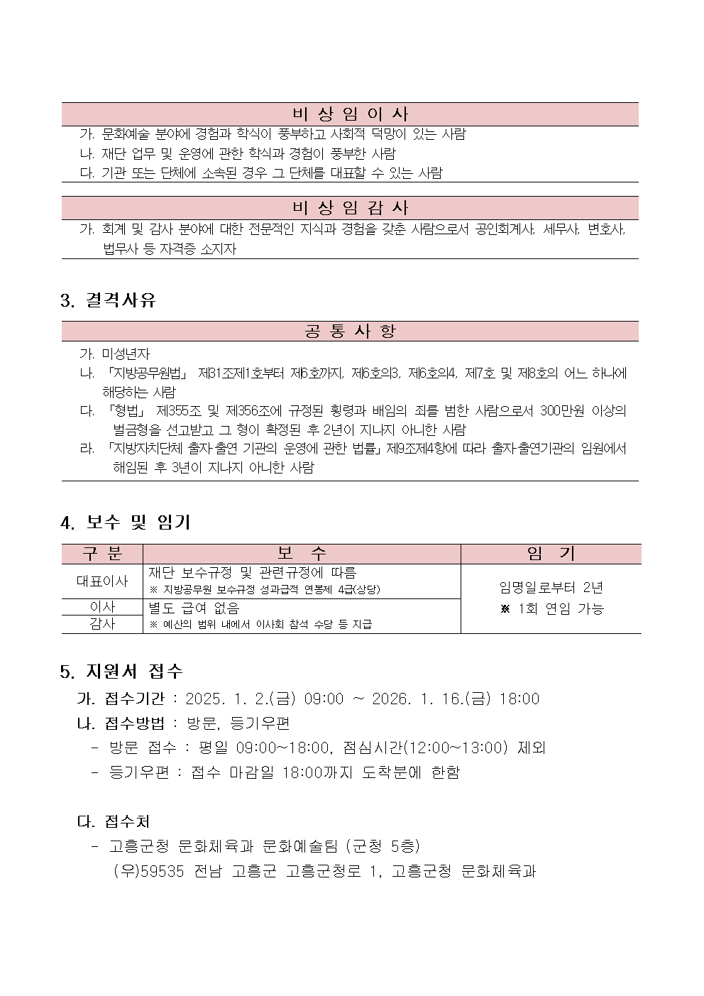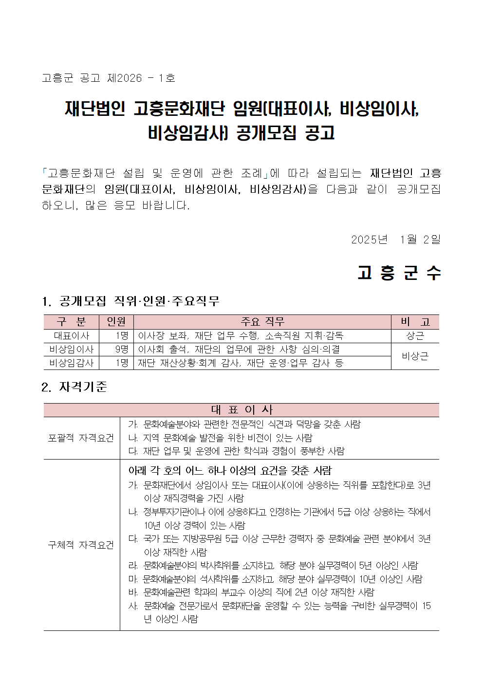 20260112025005_재단법인고흥문화재단 임원(대표이사, 비상임이사, 비상임감사) 공개모집 공고.hwp