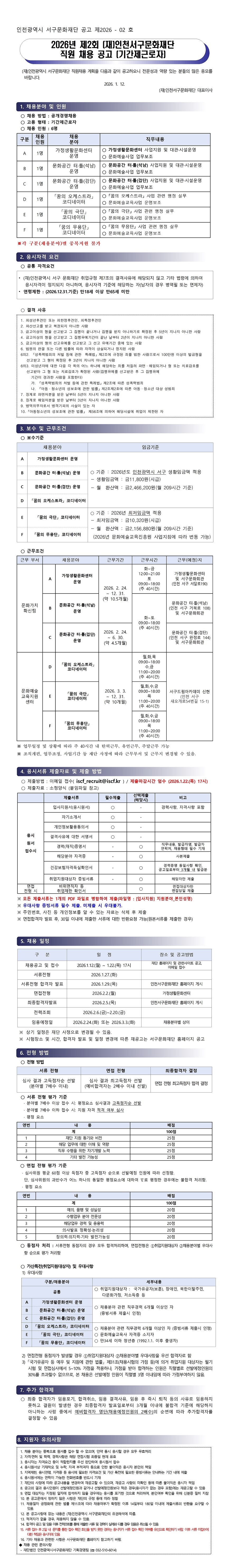 [(재)인천서구문화재단] 2026년 제2회 인천서구문화재단 직원 채용 공고(기간제근로자)