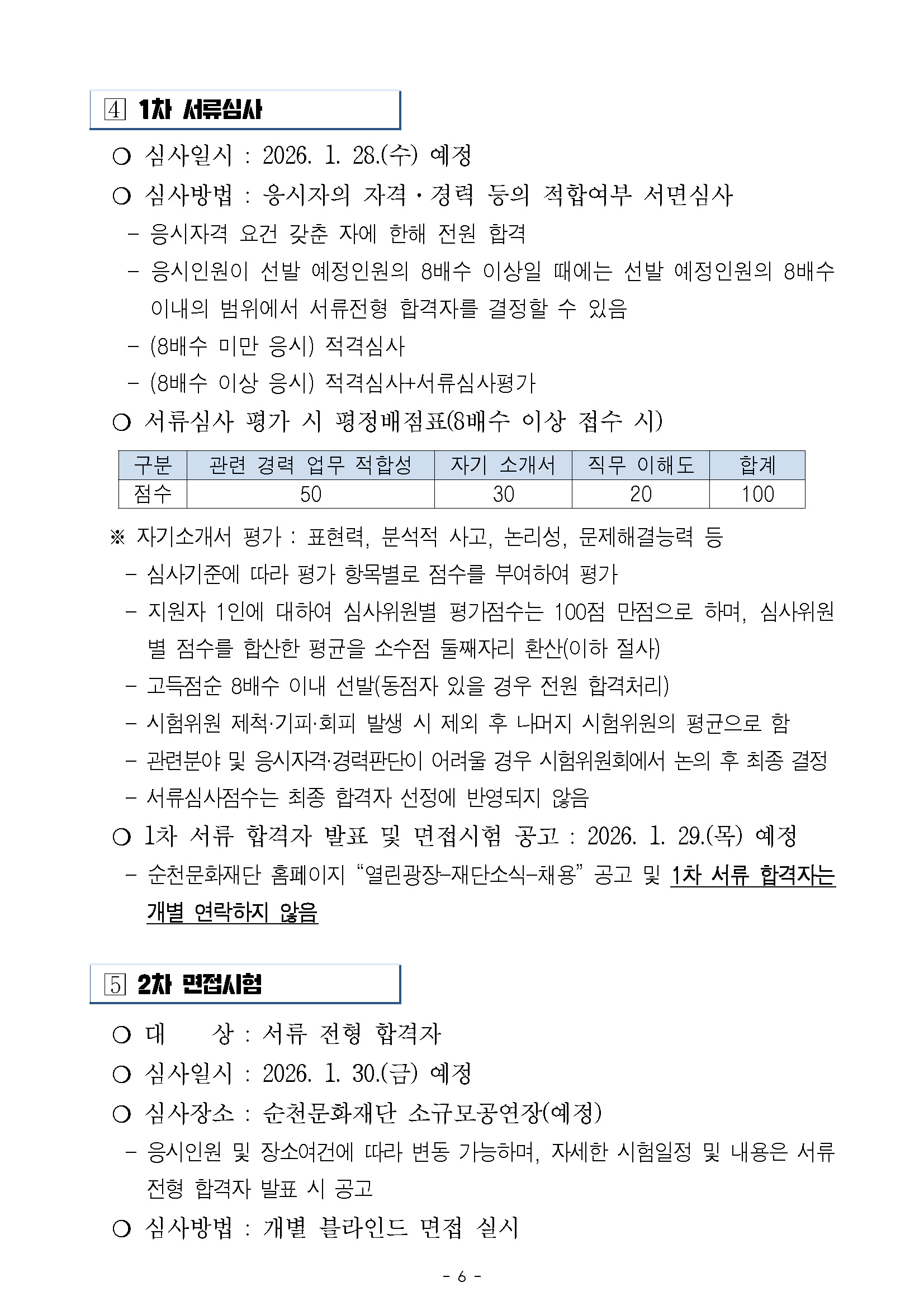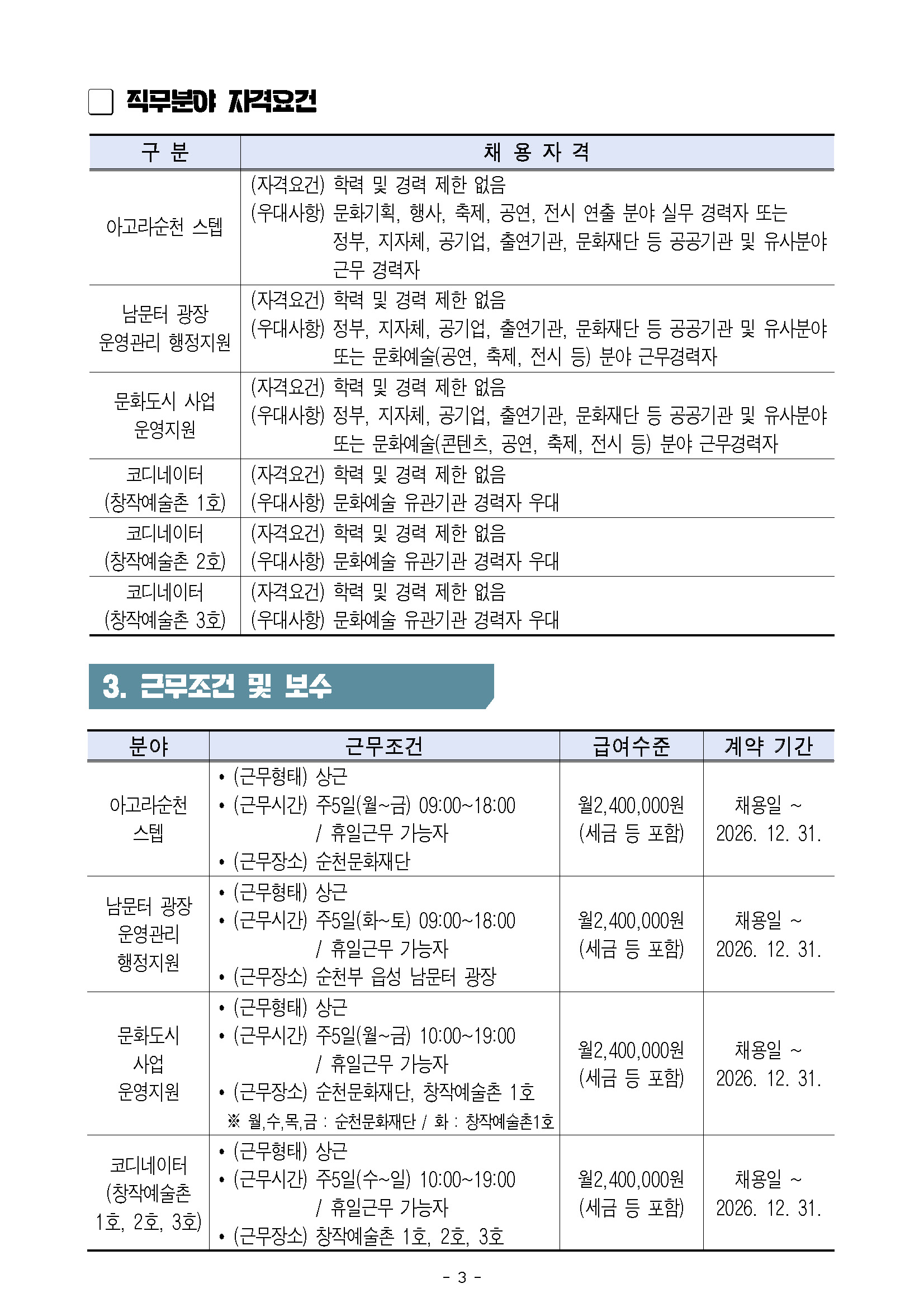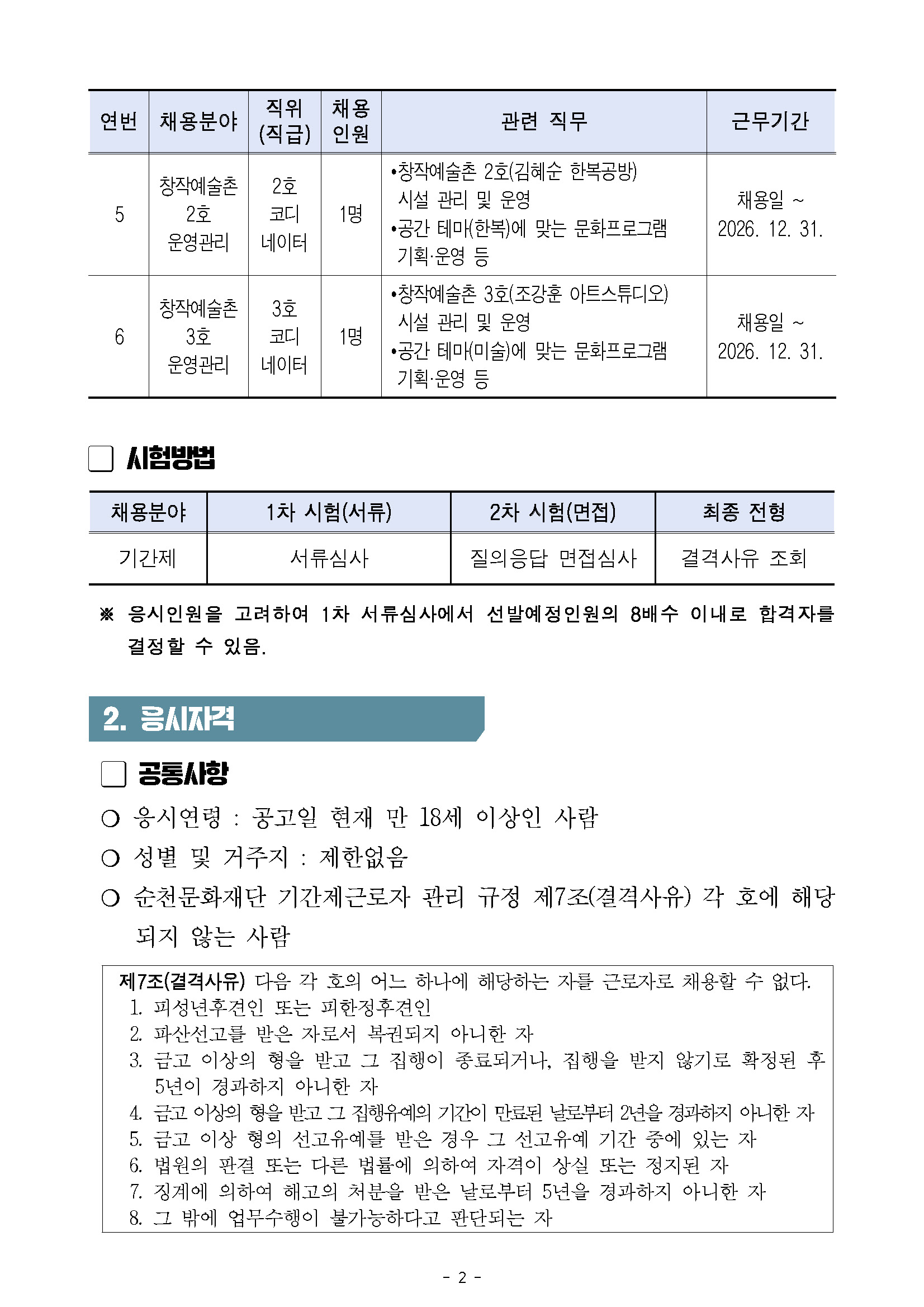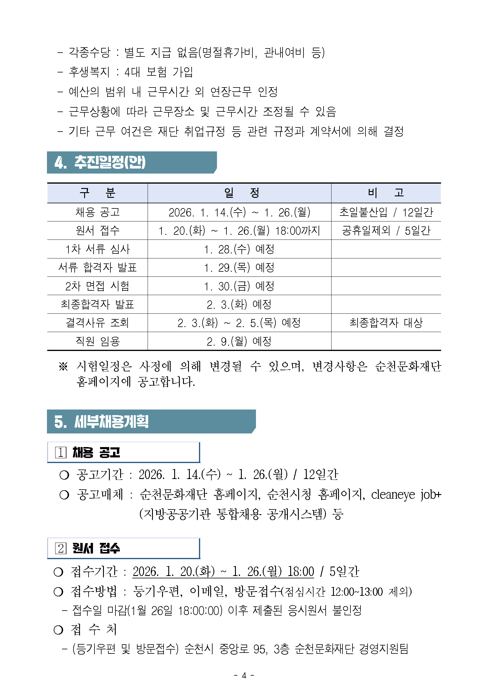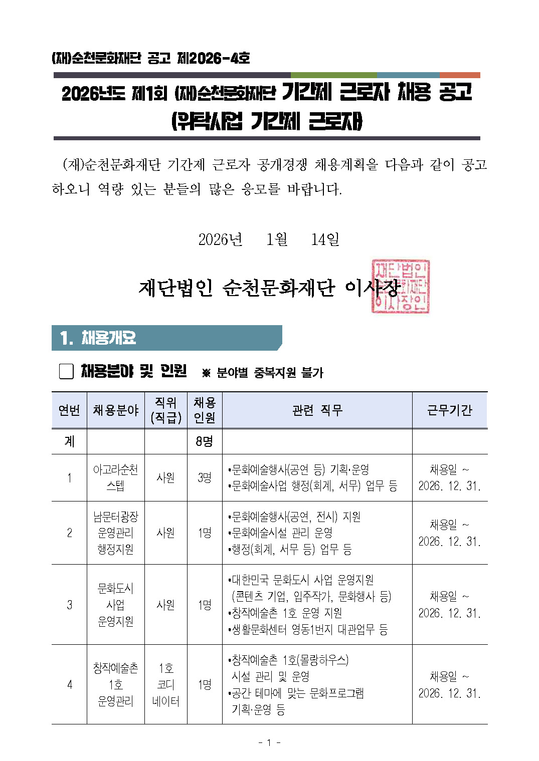 [순천문화재단] 2026년 제1회 (재)순천문화재단 기간제 근로자 채용 공고