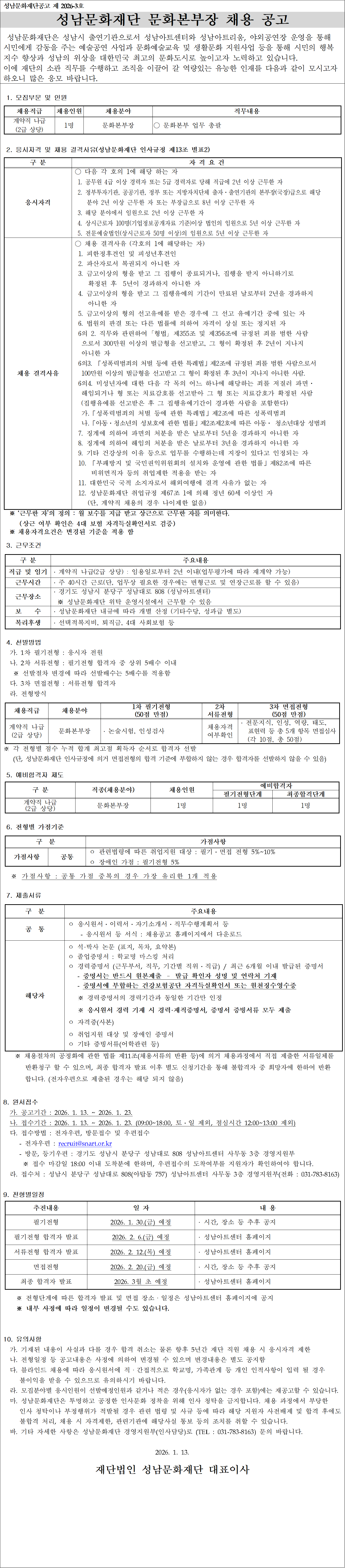[성남문화재단] 성남문화재단 문화본부장 채용 공고