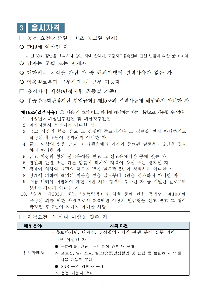 2026년 재단법인 영덕문화관광재단 제2차 직원 채용 공고