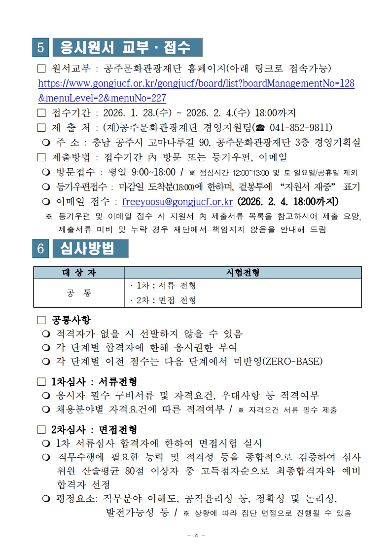 [(재)공주문화관광재단] 2026년 제1회 직원 채용 공고