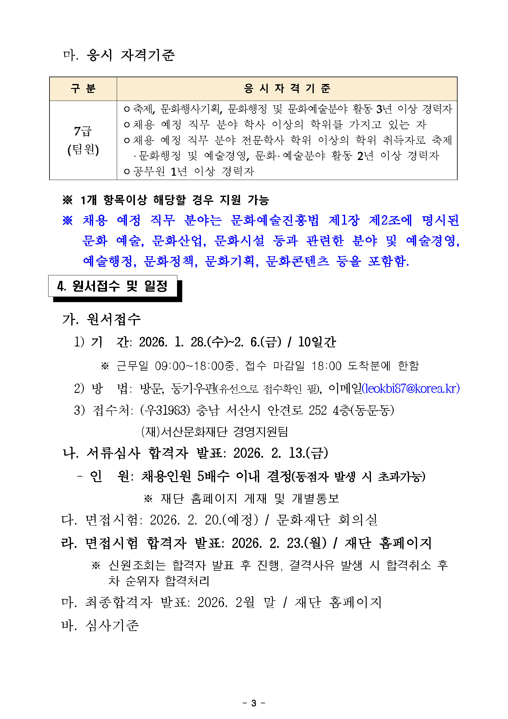 2025년 제7차 재공고 및 2026년 제1차 (재)양천문화재단 직원 채용 공고(~2/5)