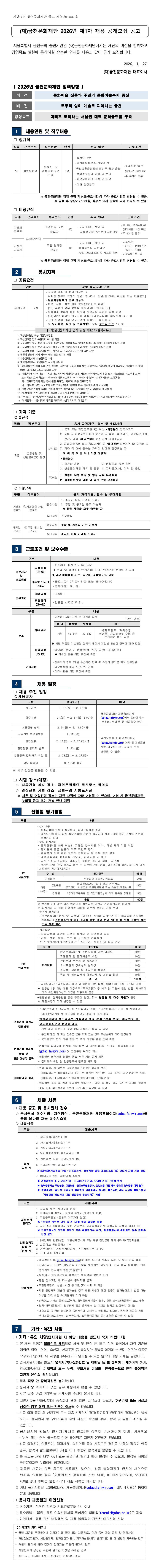 [아트모아] (재)금천문화재단 2026년 제1차 채용 공개모집 공고