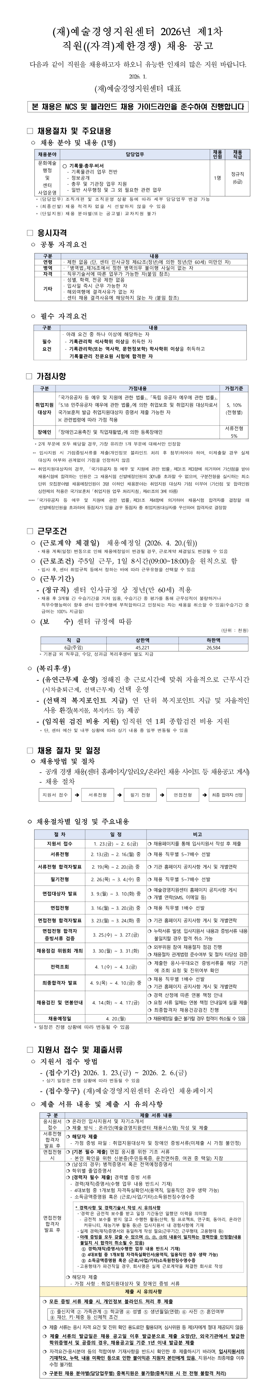 [(재)예술경영지원센터] (재)예술경영지원센터 2026년 제1차 직원 ((자격)제한경쟁) 채용