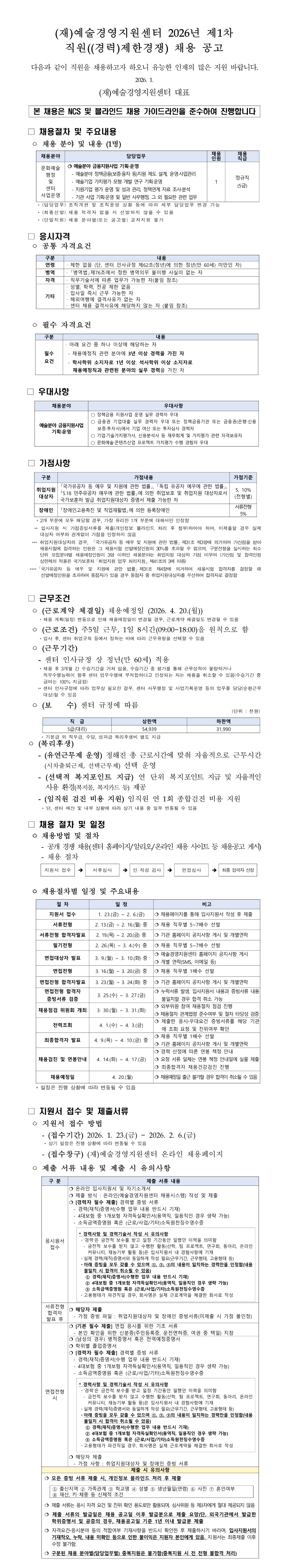 [(재)예술경영지원센터 ] (재)예술경영지원센터 2026년 제1차 직원 ((경력)제한경쟁) 채용 공고