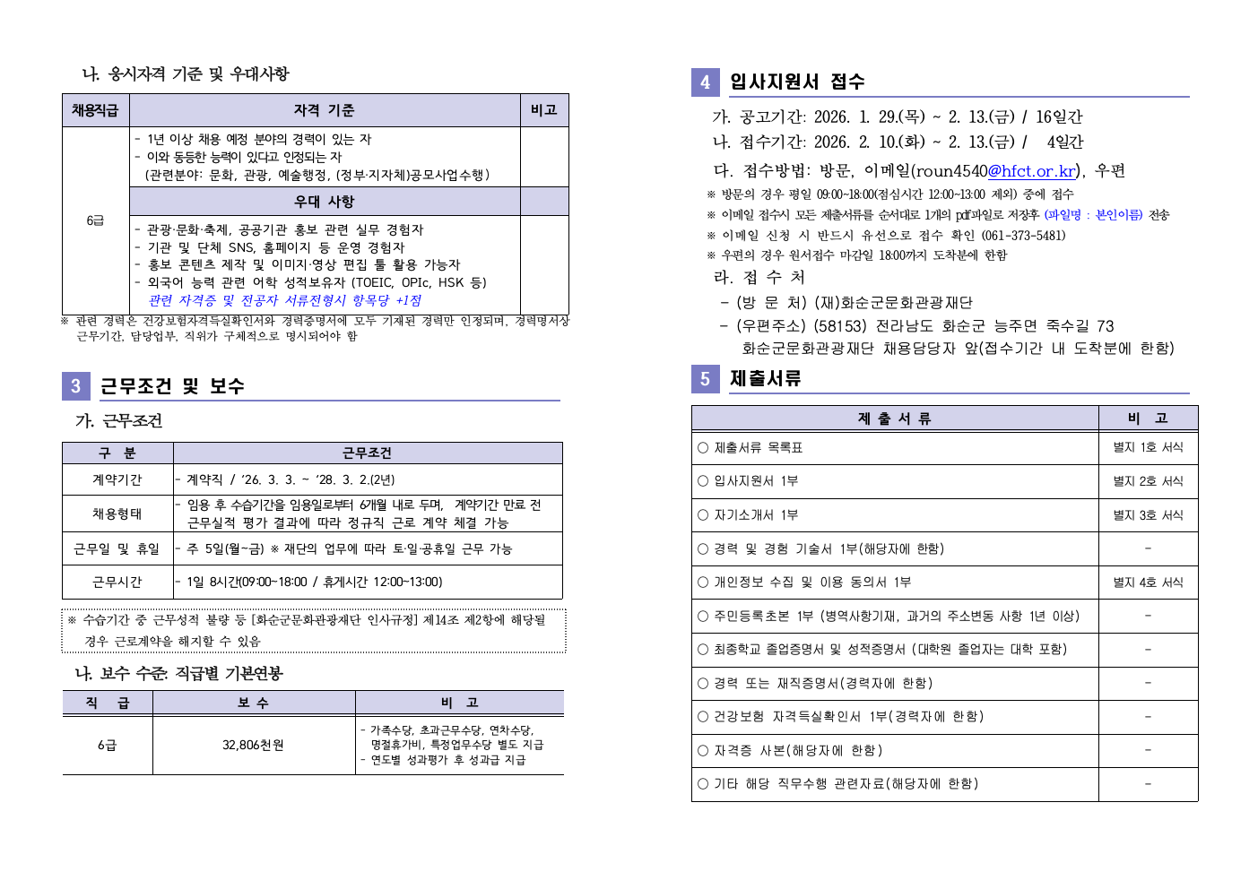 [전국지역문화재단연합회] [(재)화순군문화관광재단] 2026년 직원채용 공고