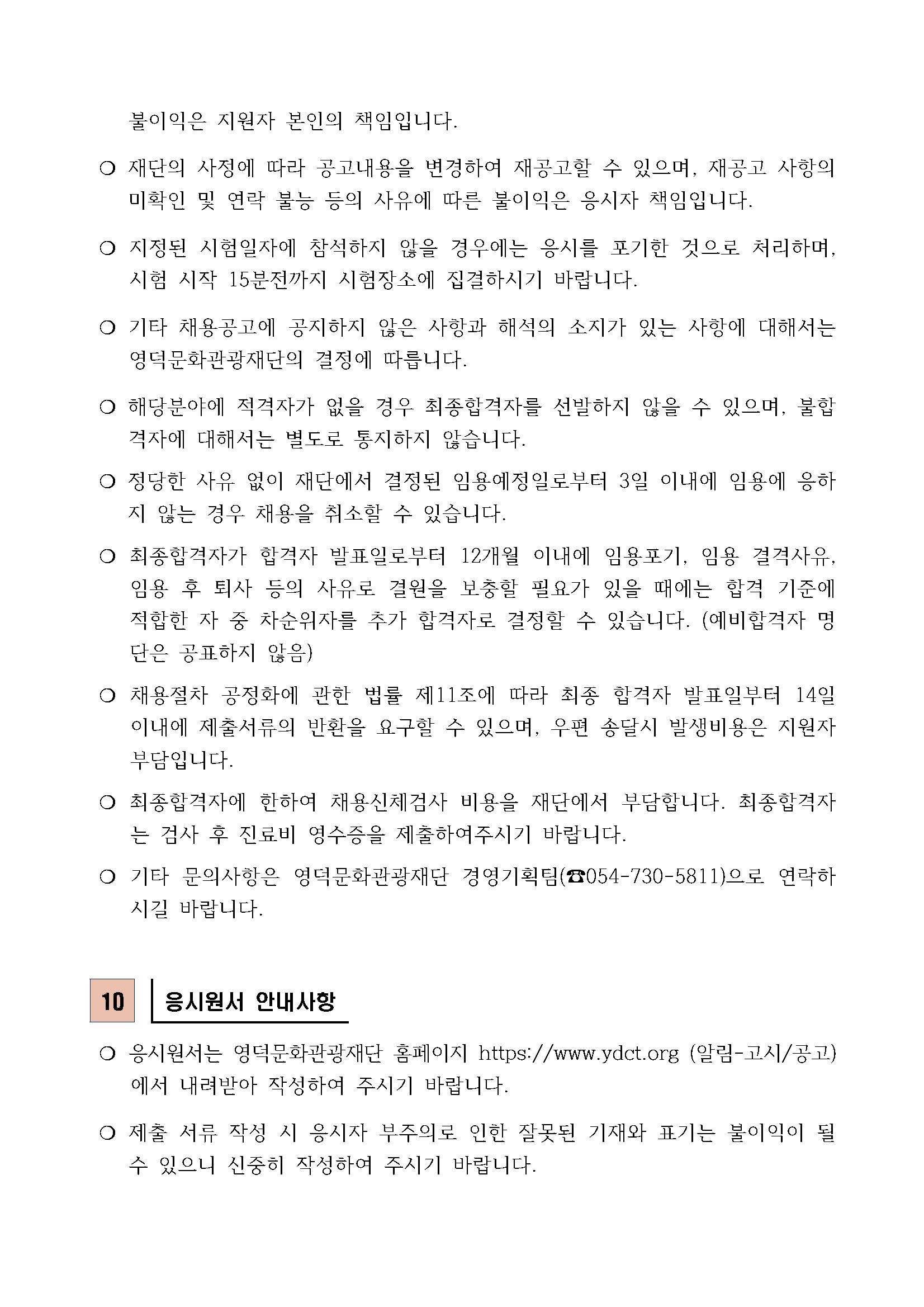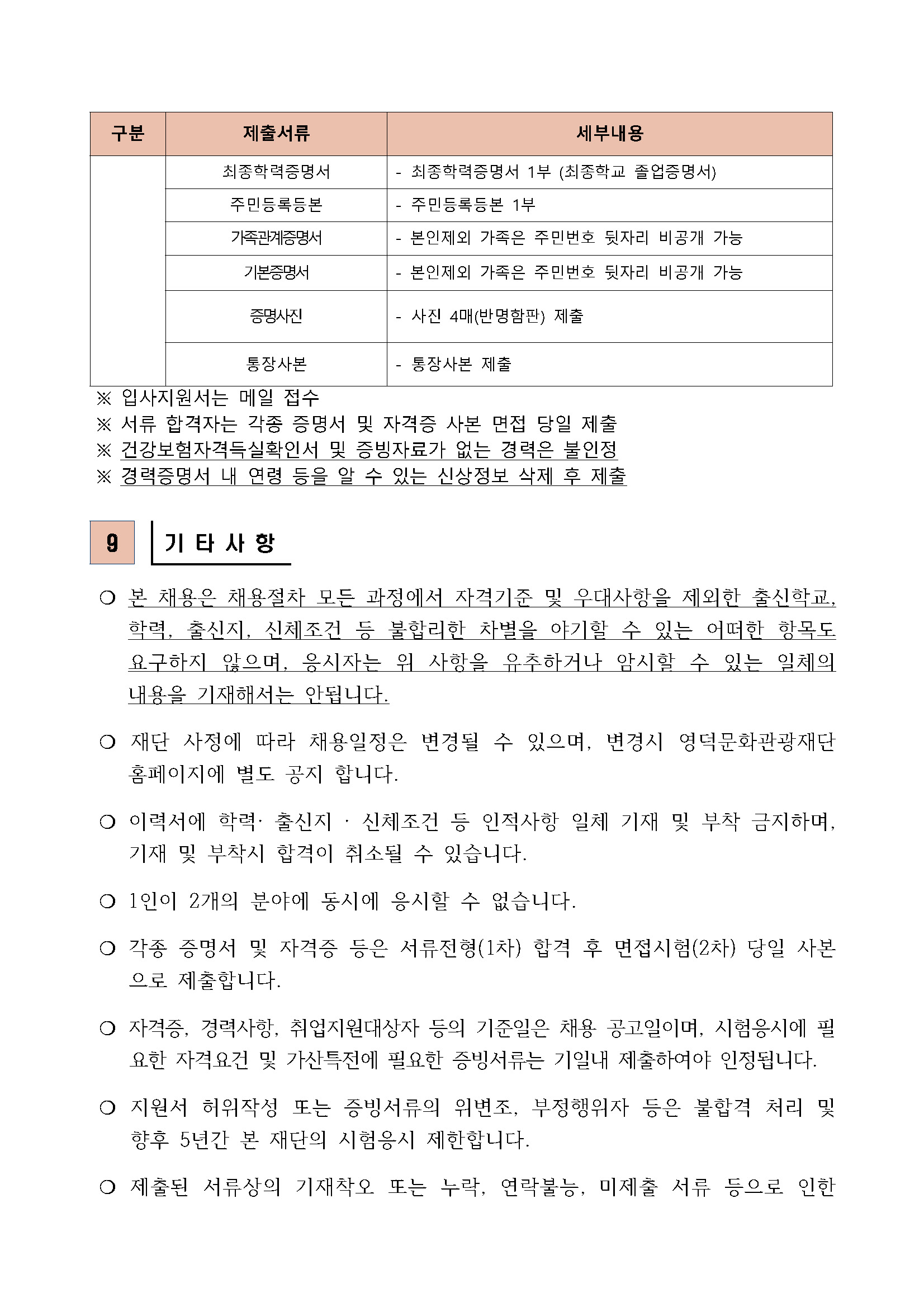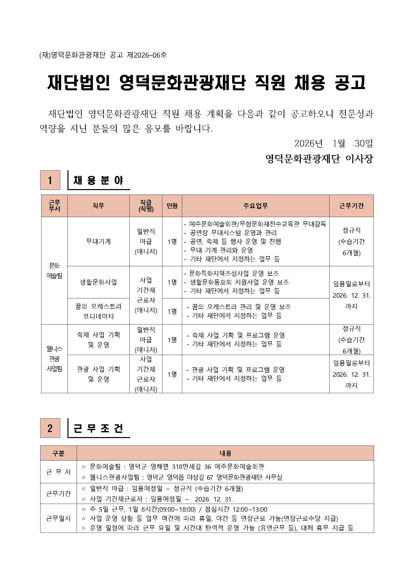 [재단법인 영덕문화관광재단] 2026년 재단법인 영덕문화관광재단 제2차 직원 채용 공고