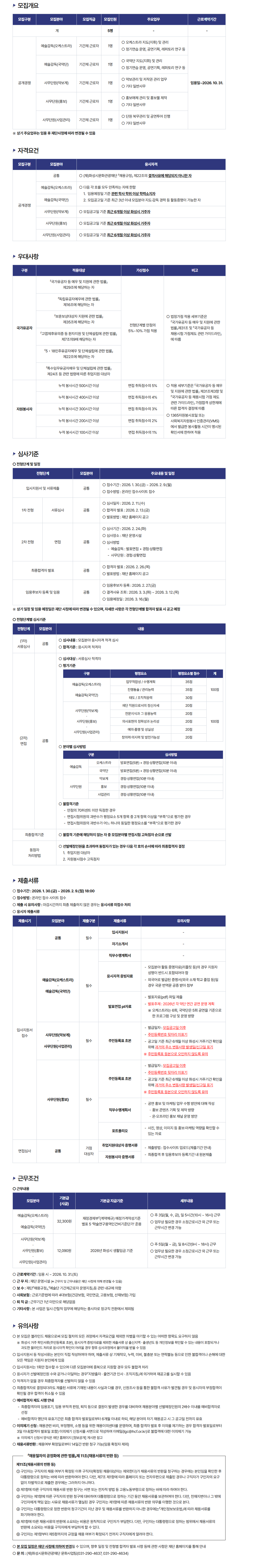 세종국악관현악단&세종국악심포니오케스트라 2026년 공연기획팀 기획자(신입 및 경력자) 모집 공고