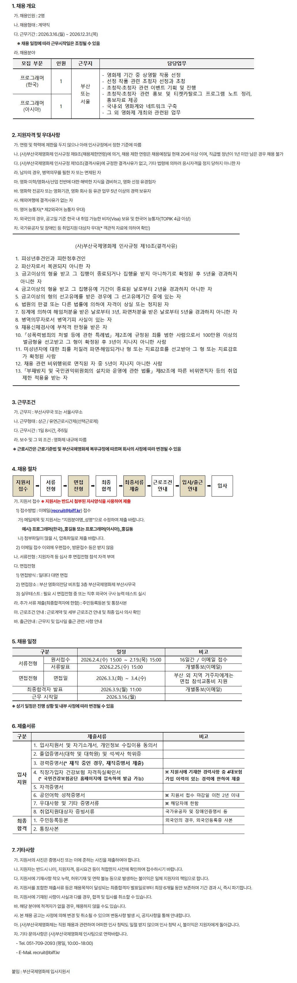 [(사)부산국제영화제] 2026년 부산국제영화제 프로그래머(계약직) 채용