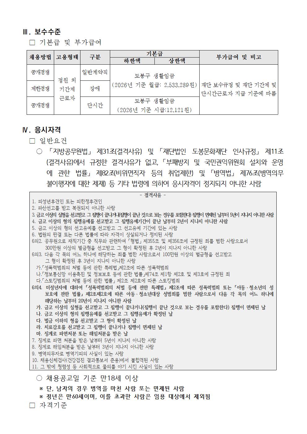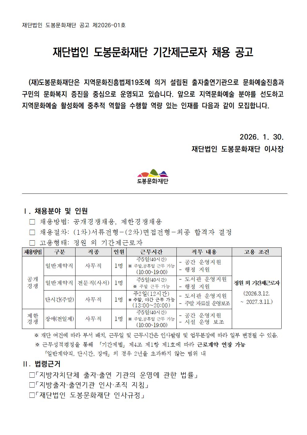 [재단법인 도봉문화재단] (재)도봉문화재단 기간제근로자 채용 공고(~2.9)