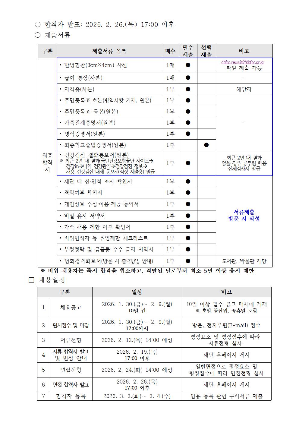 [(재)동대문문화재단] 2026년 제1차 직원 채용 공고