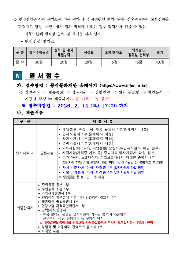 [(재)동작문화재단] 2026년 제5차 직원 채용 공고