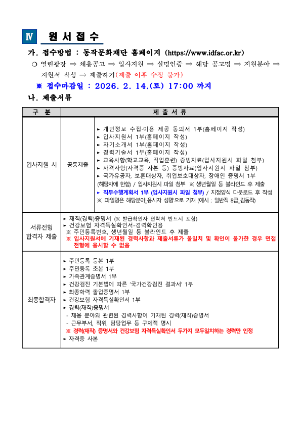 [(재)동작문화재단] 2026년 제4차 직원 채용 공고