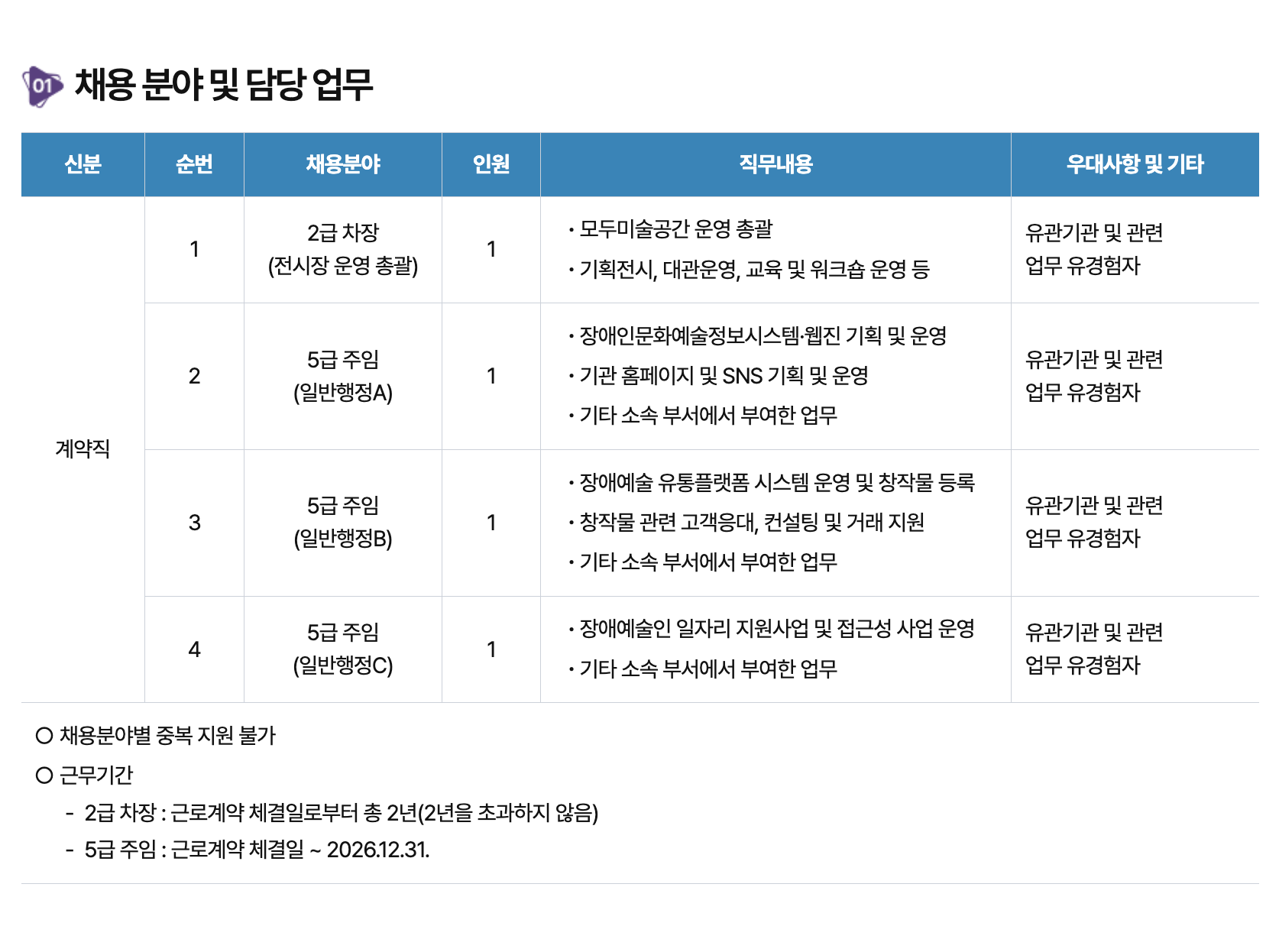 하기 내용은 참고만 하시고 반드시 접수사이트의 상세공고(자격요건, 업무, 보수, 계약기간, 근무장소 등) 확인바랍니다.