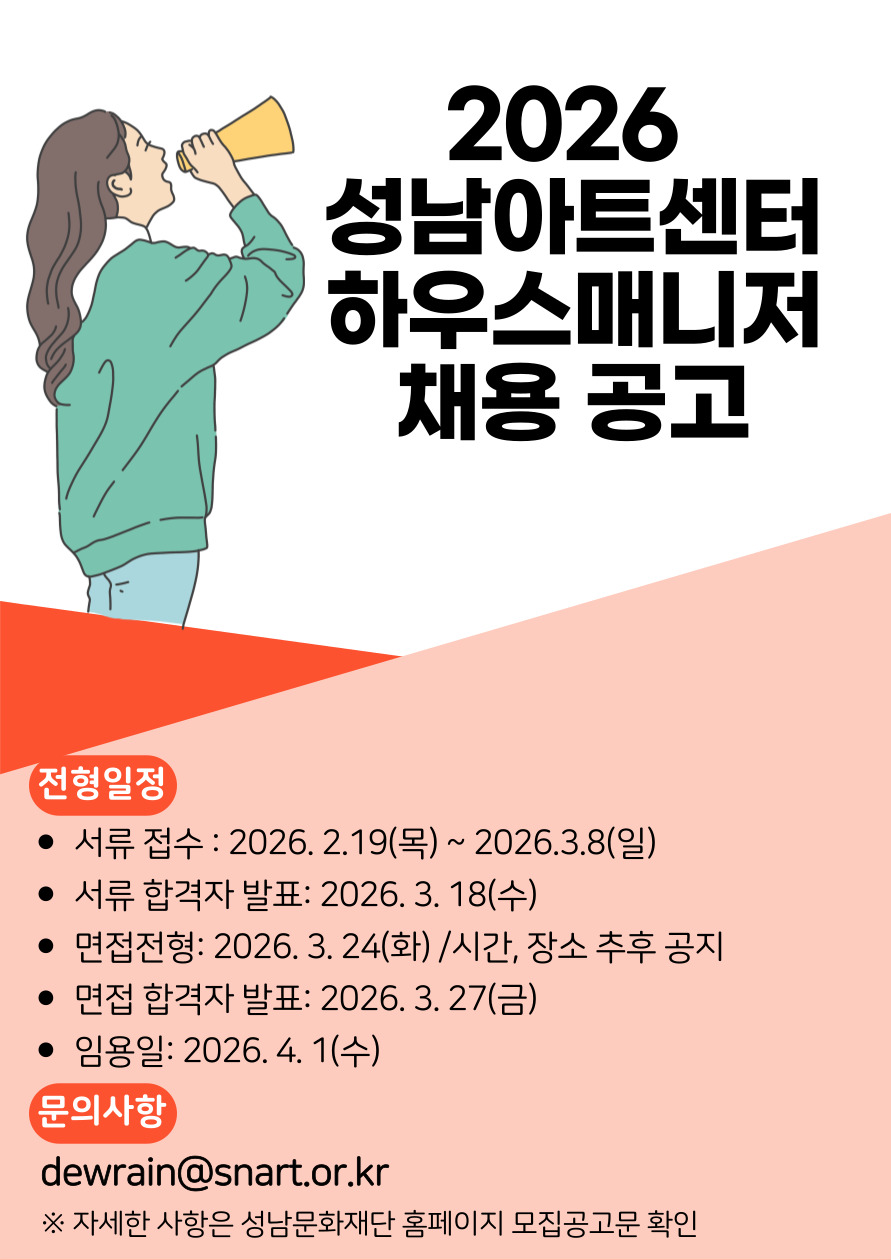 [아트모아] 2026 성남아트센터 하우스매니저(기간제근로자) 채용 공고