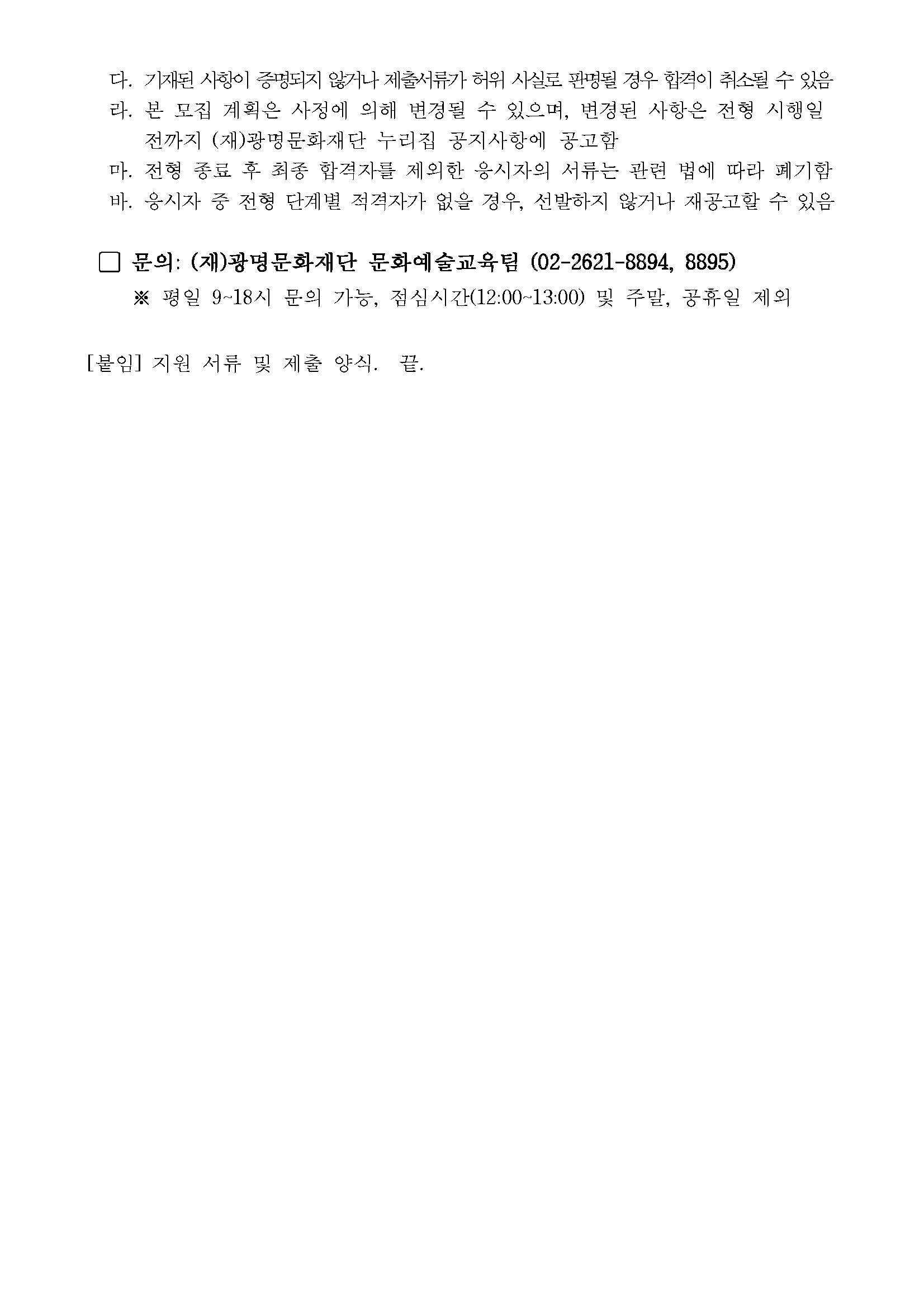 [아트모아] 2026 (재)광명문화재단 문화예술교육팀 음악감독 모집 공고