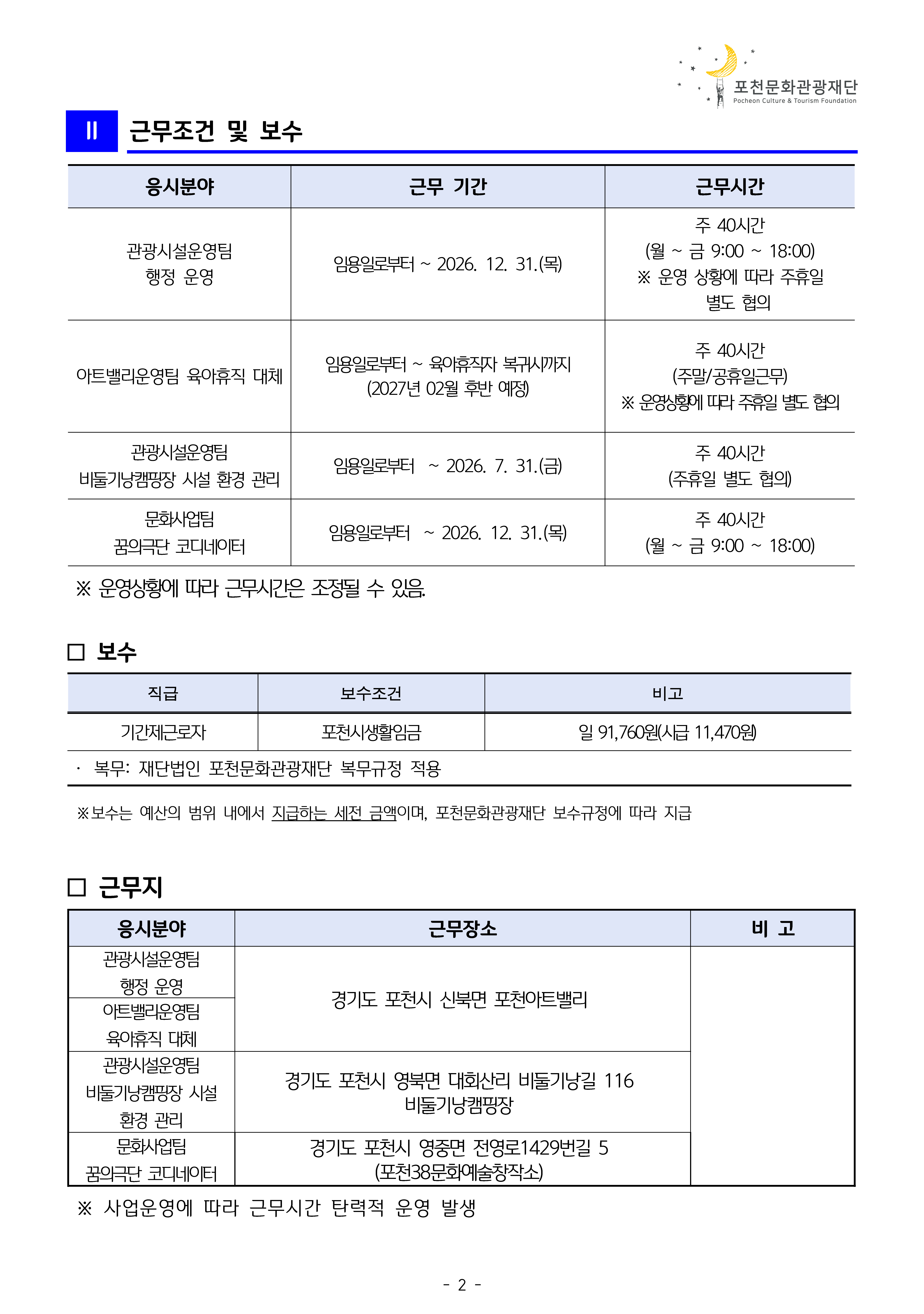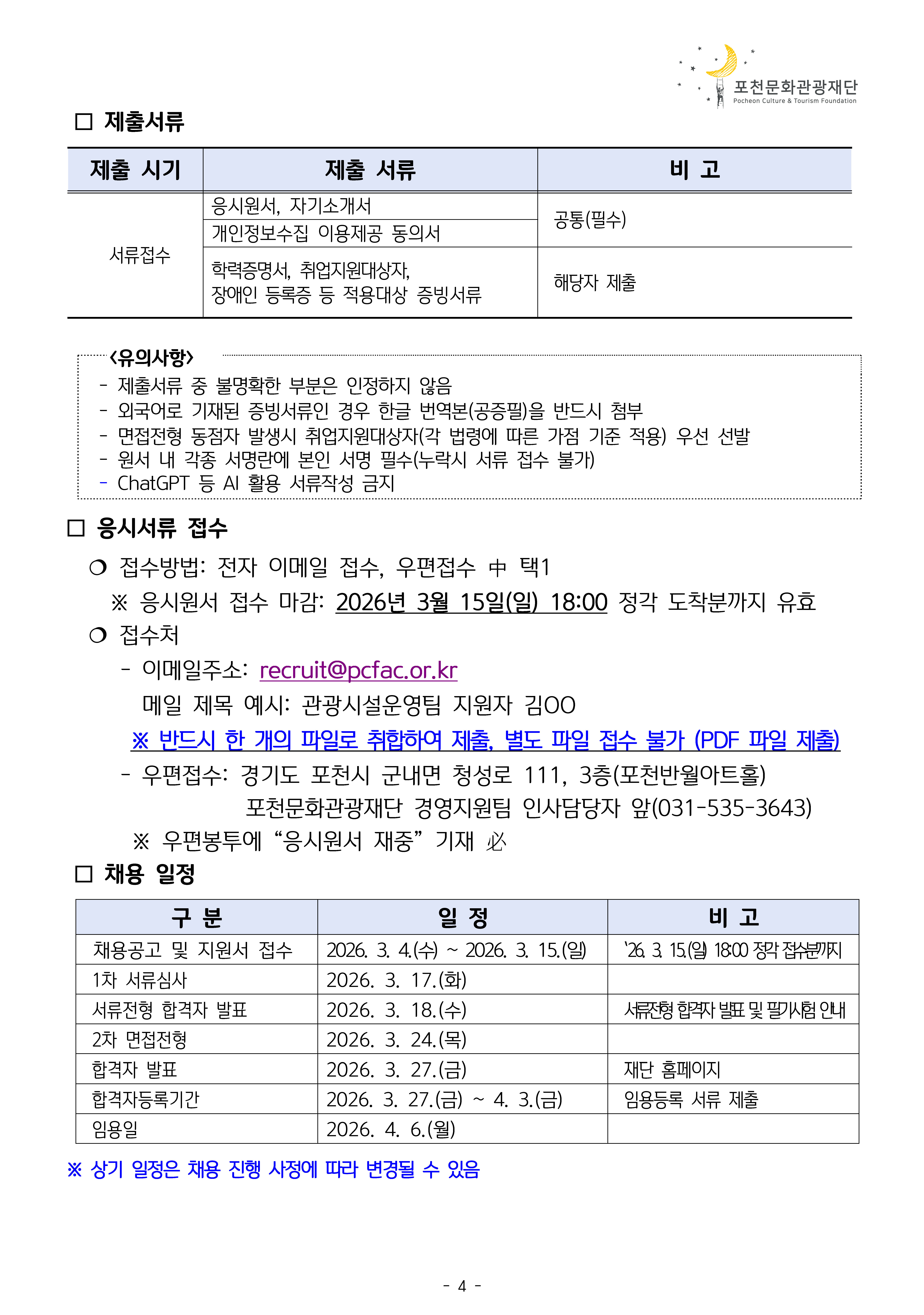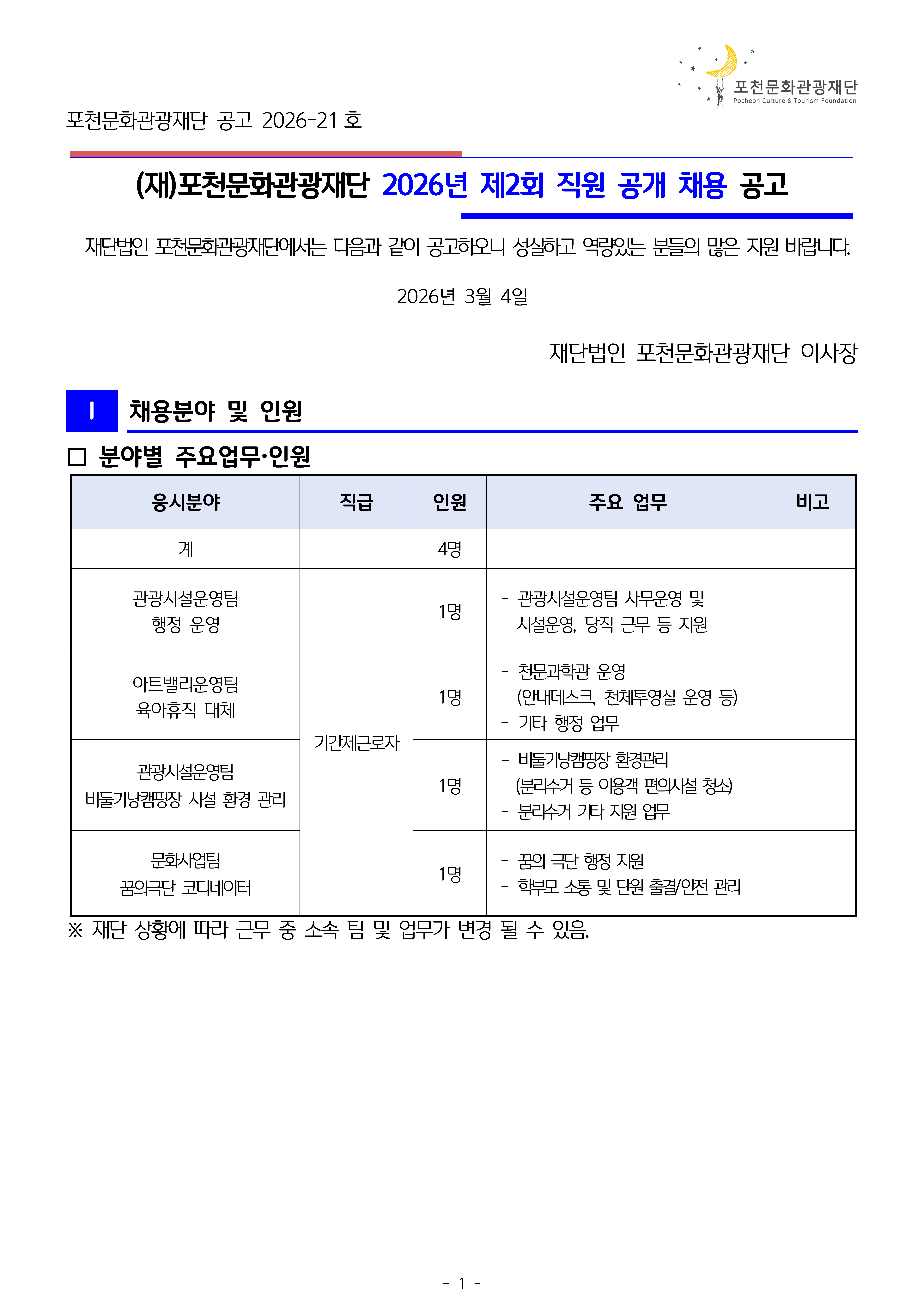 [아트모아] (재)포천문화관광재단 2026년 제2회 직원 공개채용 공고