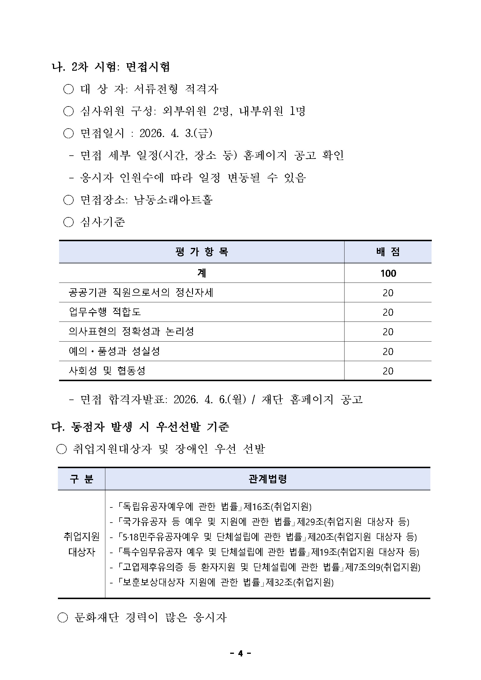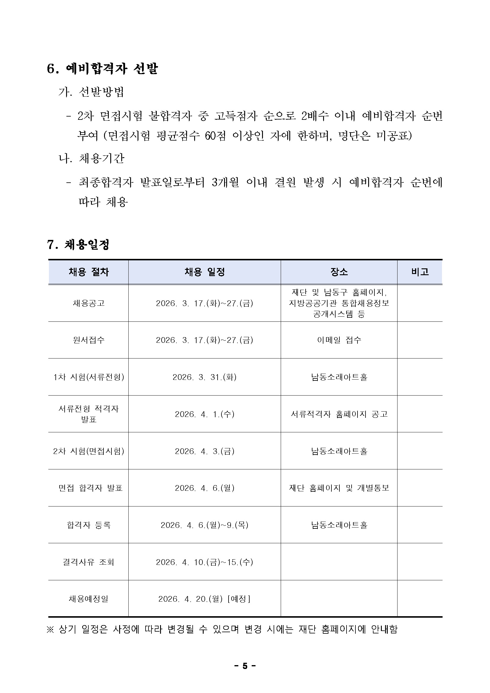 [재단법인 남동문화재단] (재)남동문화재단 2026년 제2회 기간제근로자 채용 공고