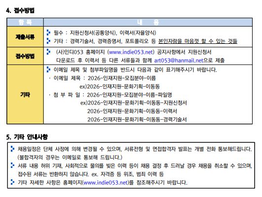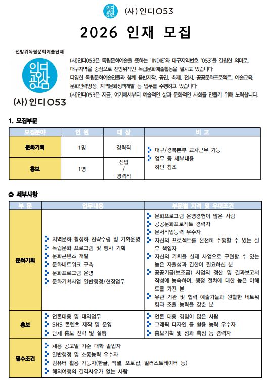 [사단법인 인디053] [회원등록공고] 2026 문화기획·홍보 인재모집