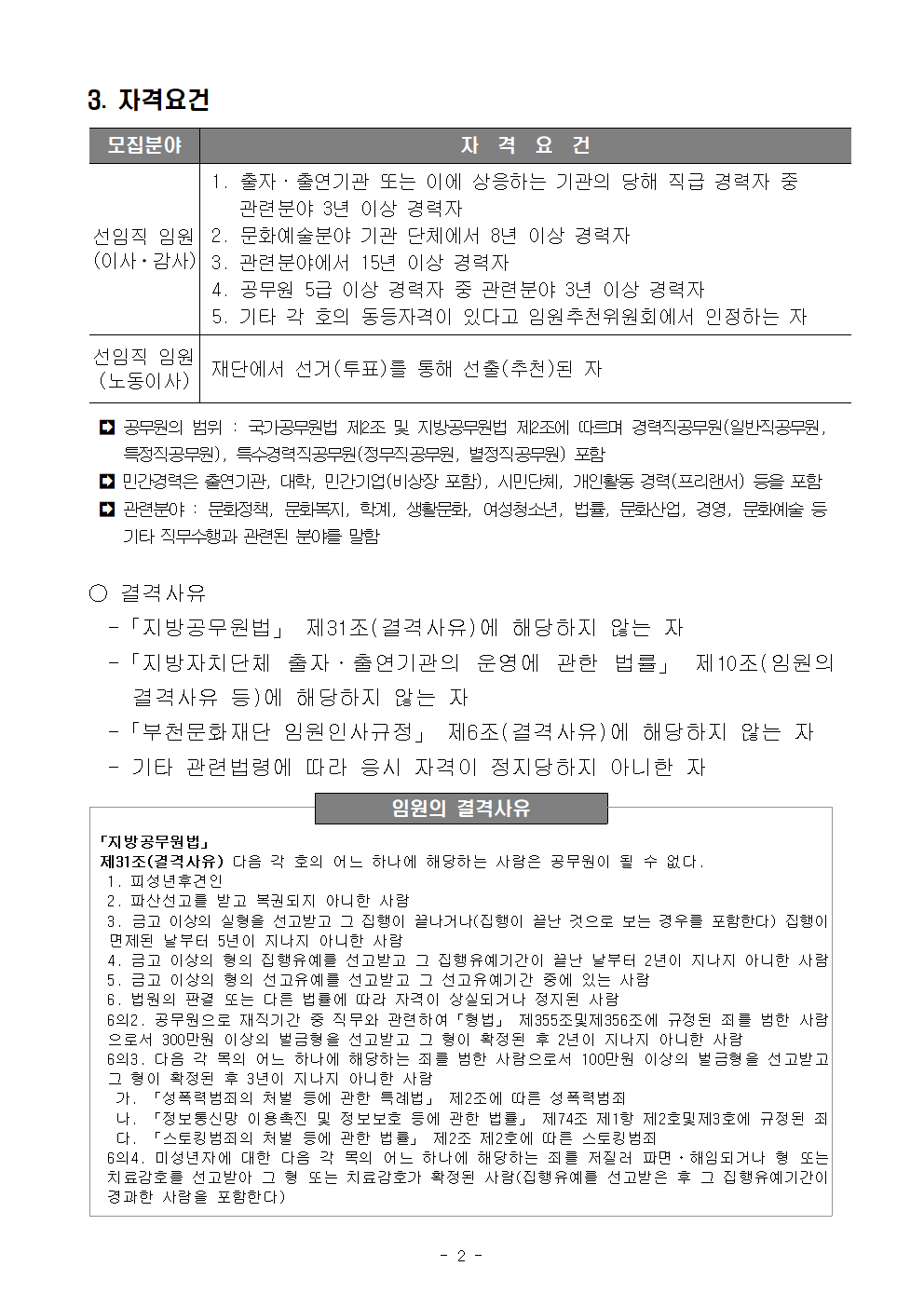 [부천문화재단] 부천문화재단 비상임 임원(이사 및 감사) 공개모집 공고