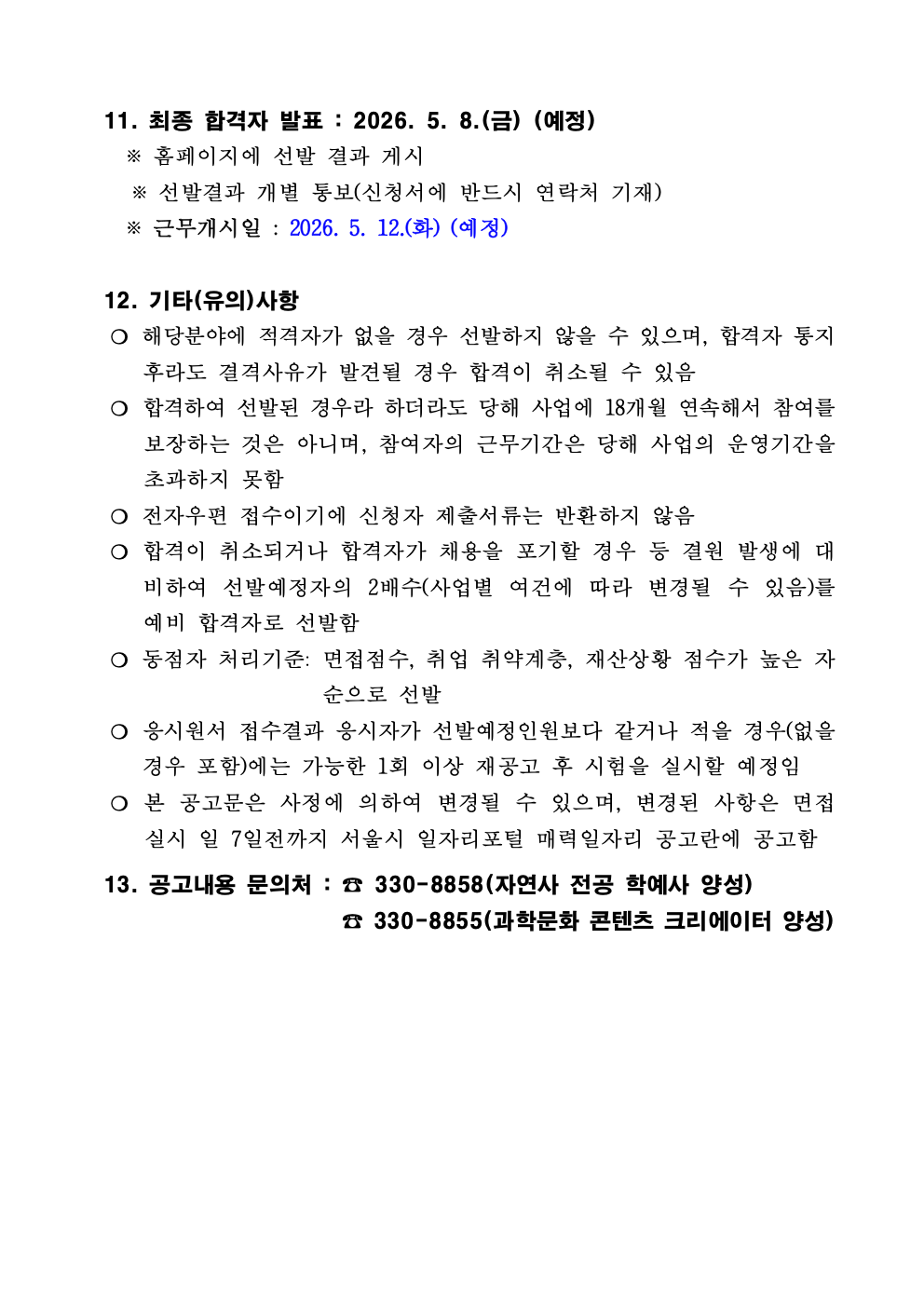 [서대문자연사박물관] 서대문자연사박물관 2026년 서울 매력일자리(과학문화 콘텐츠 크리에이터 양성) 참여자 모집