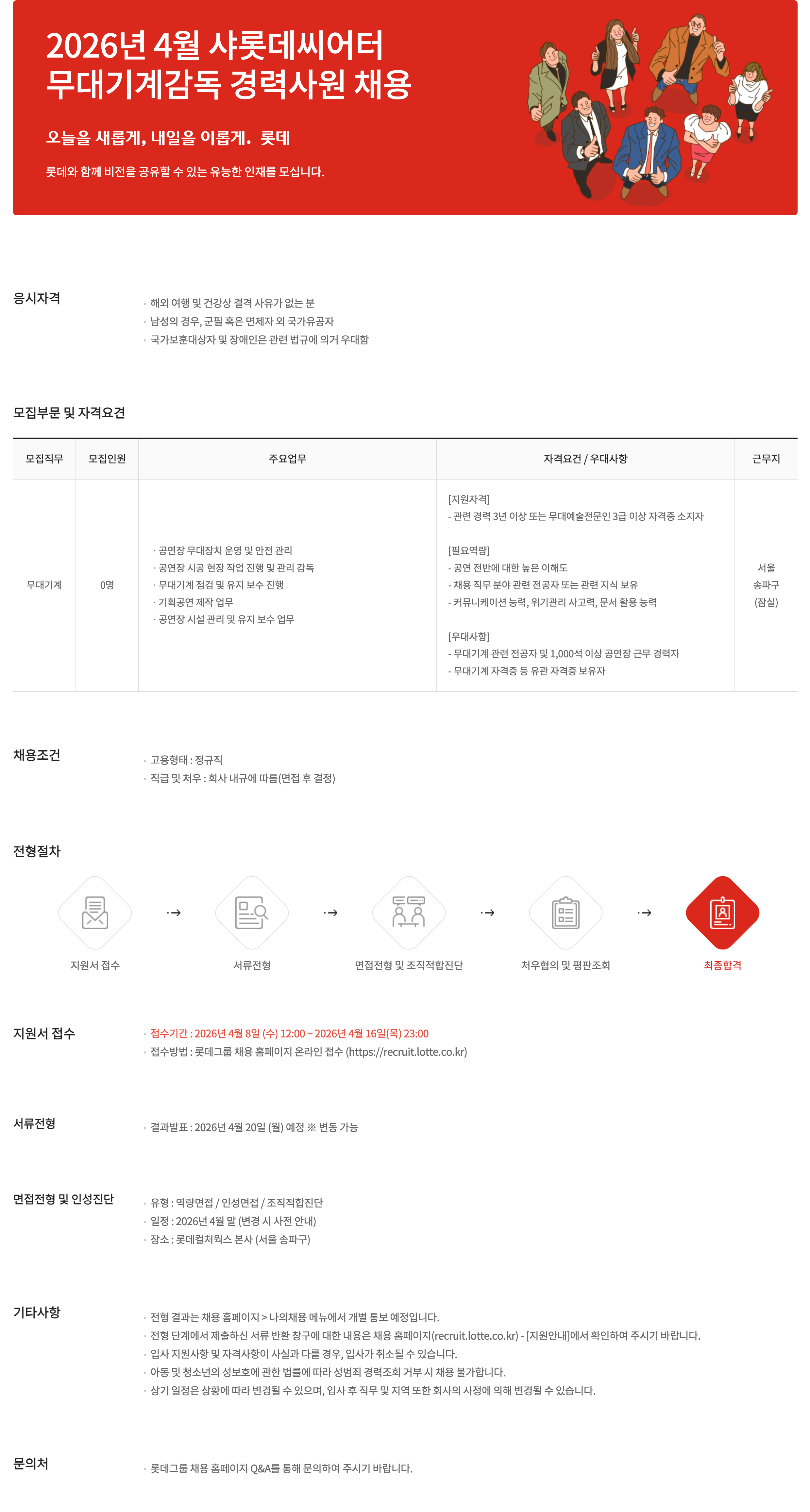 [롯데컬처웍스] 2026년 4월 샤롯데씨어터 무대기계감독 경력사원 채용