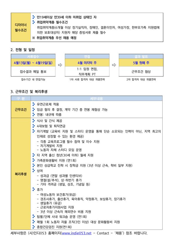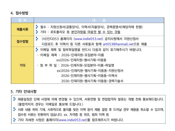 20260410114256_2026 (사)인디053 기획(경력직) 및 디자이너 인재모집 공고문&지원신청서.hwp