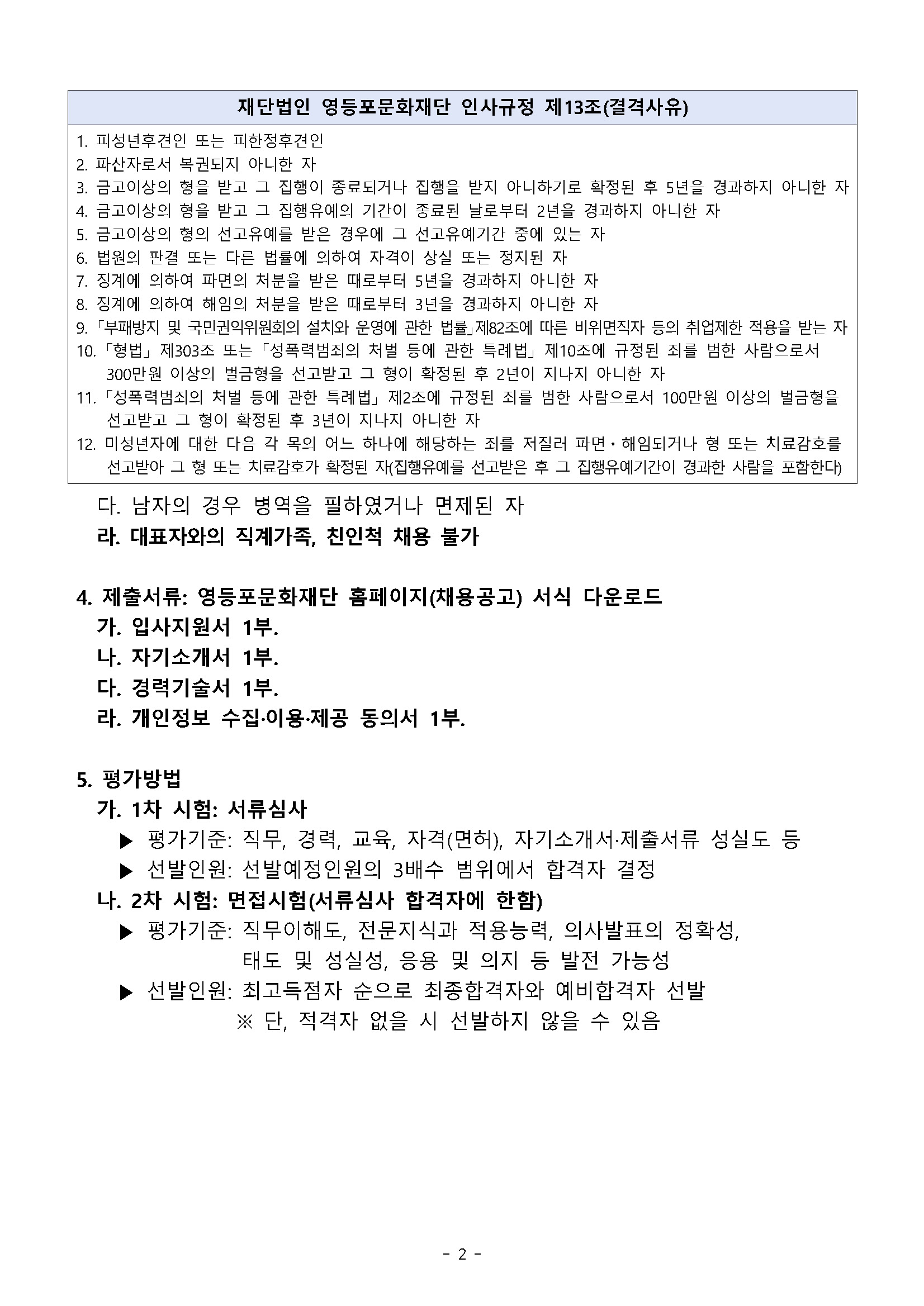2025년 제7차 재공고 및 2026년 제2차 (재)양천문화재단 직원 채용 공고(~3. 19.)