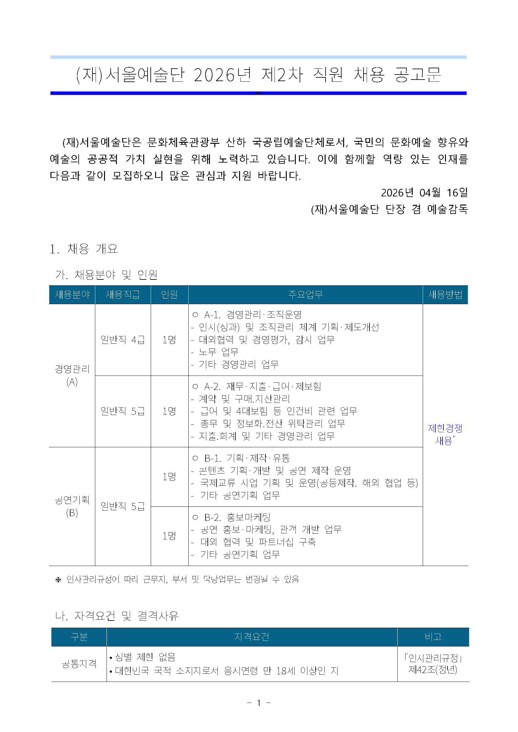 20260417043116_(재)서울예술단 2026년 제2차 직원 채용 공고문.pdf