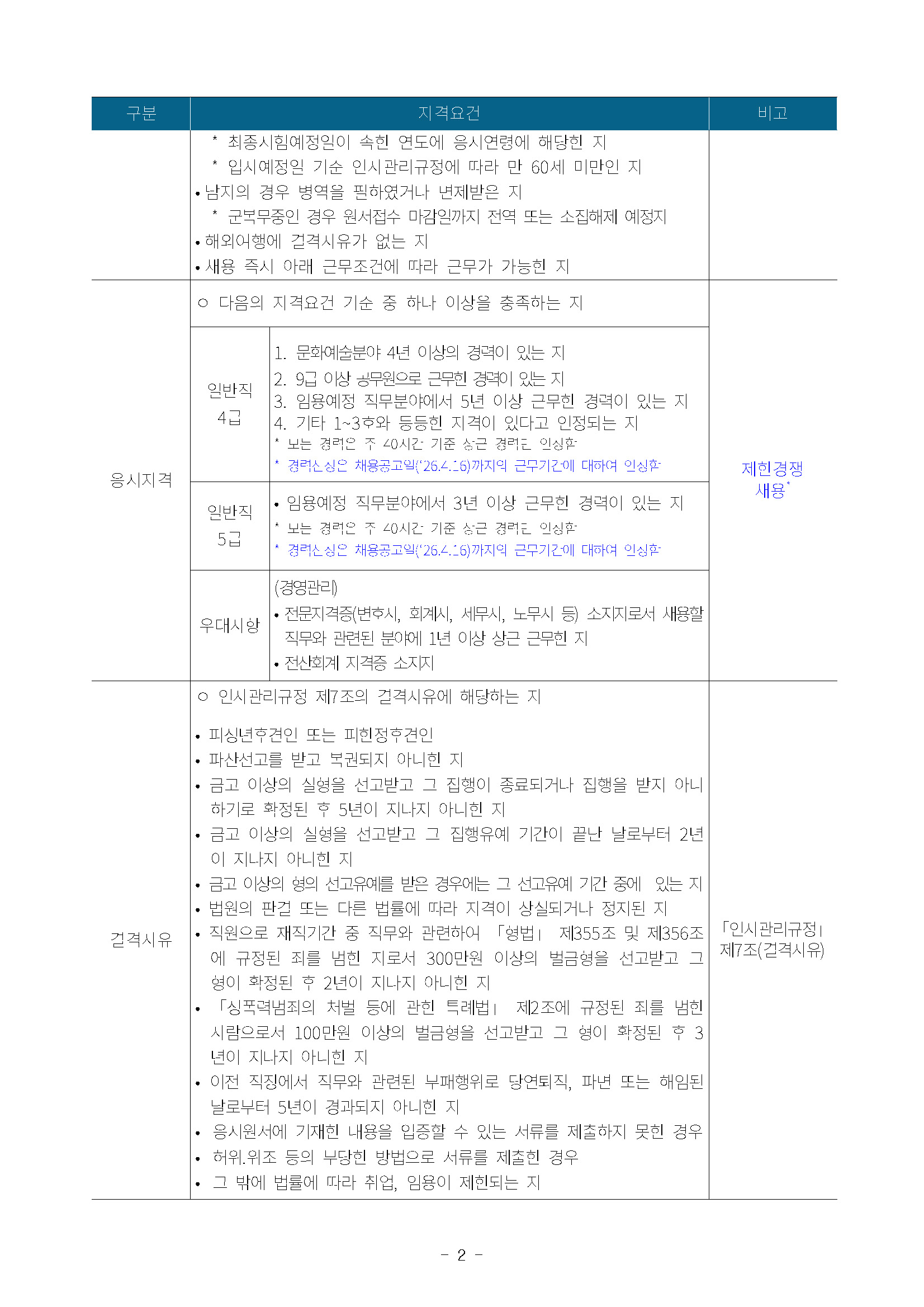 (재)예술경영지원센터 2026년 제1차 직원(공개경쟁) 채용
