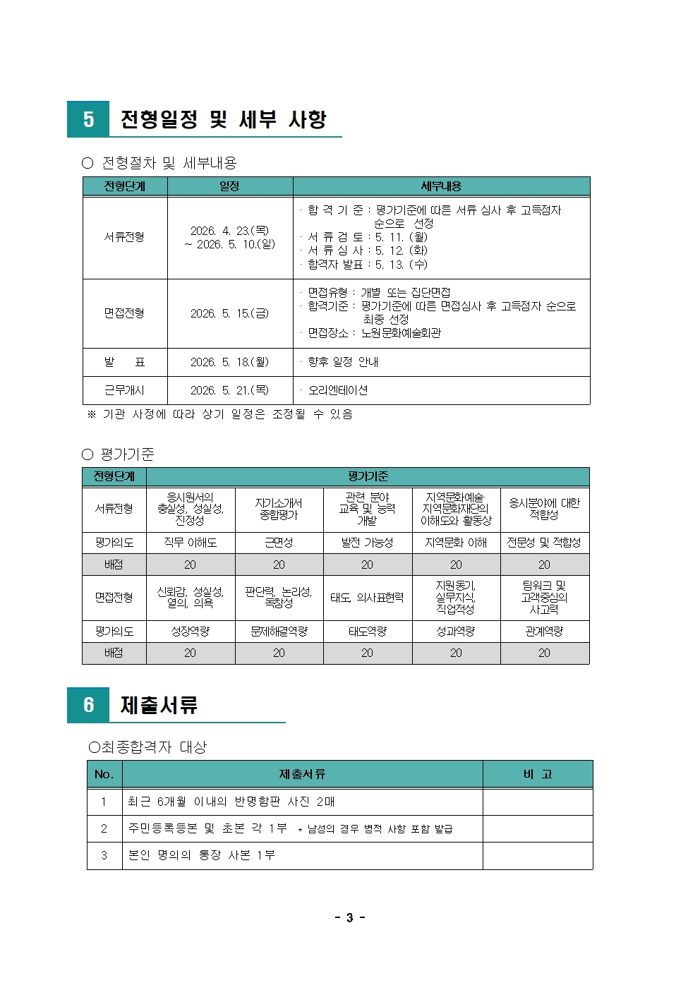 노원문화재단 2026년 제3차 공개채용 재공고