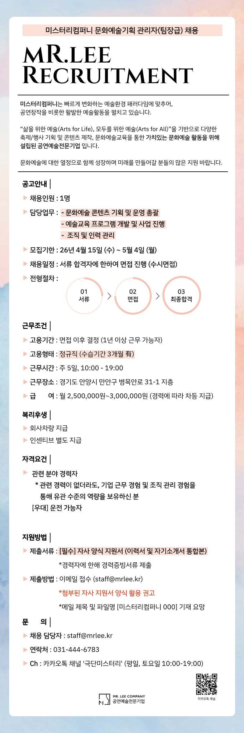 [미스터리컴퍼니] [미스터리컴퍼니] 문화예술기획 관리자(팀장급) 모집