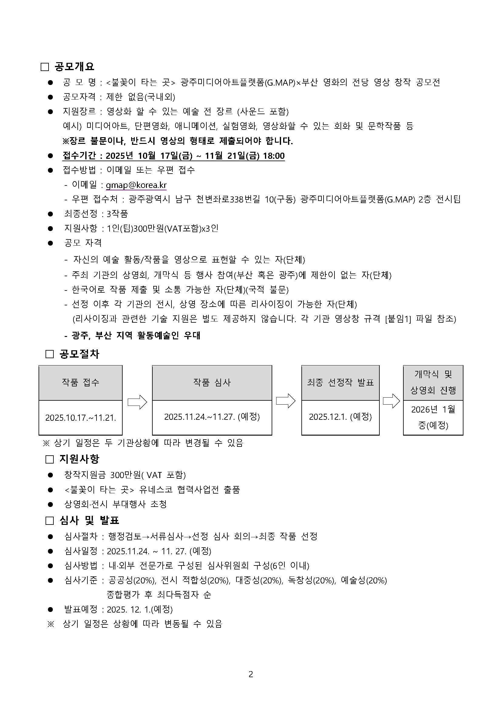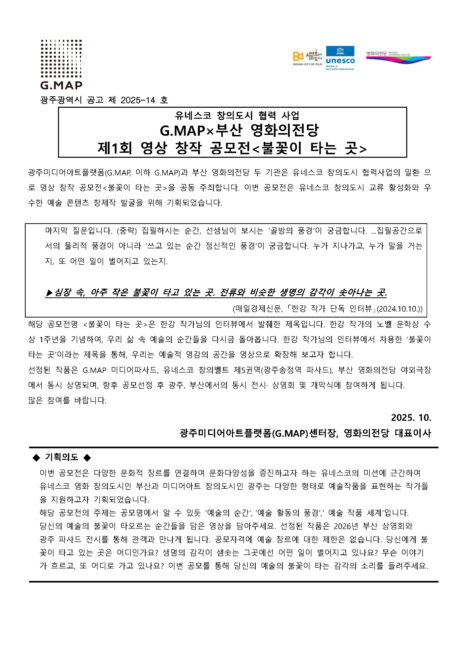 [광주미디어아트플랫폼] G.MAP×부산 영화의전당 <불꽃이 타는 곳> 영상 창작 공모전 공고_ 유네스코창의도시 협력사업