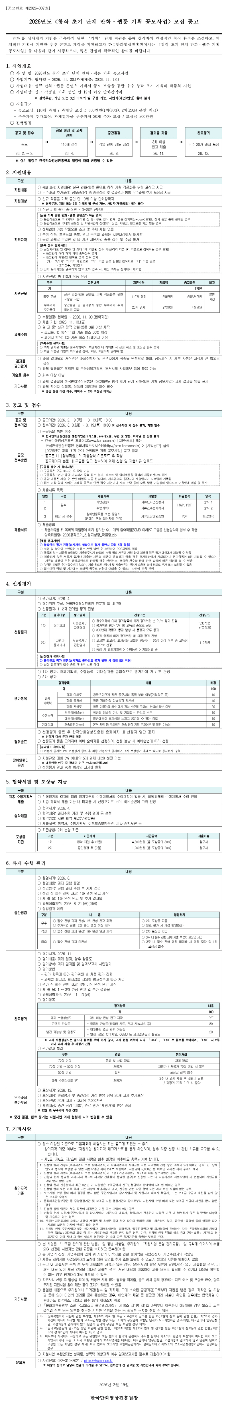 [한국만화영상진흥원] 2026년도 창작 초기 단계 만화·웹툰 기획 공모사업