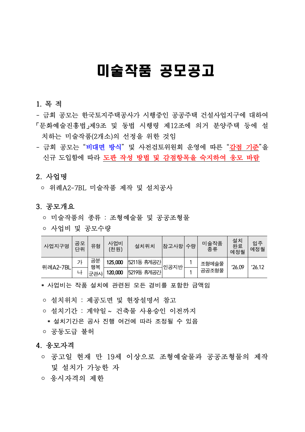 [예술경영지원센터(공모/기금/행사)] 2026 LH 서울지역본부 공동주택 미술작품 제작 및 설치 공모 공고